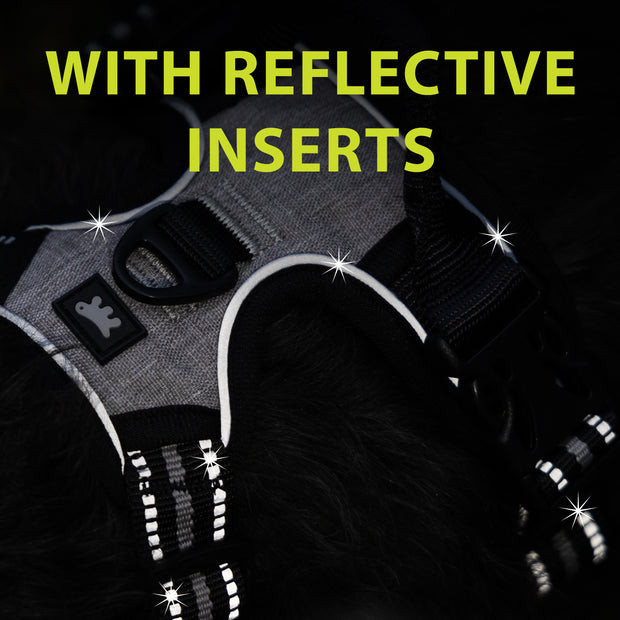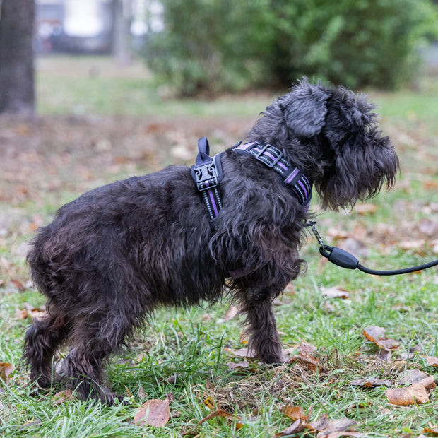 Шлейка легко регулируется с помощью практичных ремешков. Каждая модель отличается минимальными и максимальными размерами охвата шеи и груди, обеспечивая идеальную адаптацию для собак разных размеров. Интегрированные светоотражающие элементы повышают видимость во время вечерних прогулок или при слабом освещении, увеличивая безопасность для вас и вашего питомца.
