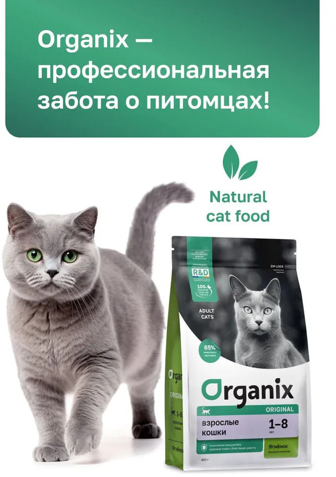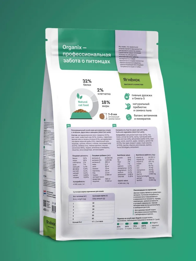 Organix Корм для взрослых кошек сухой с ягнёнком, фруктами и овощами