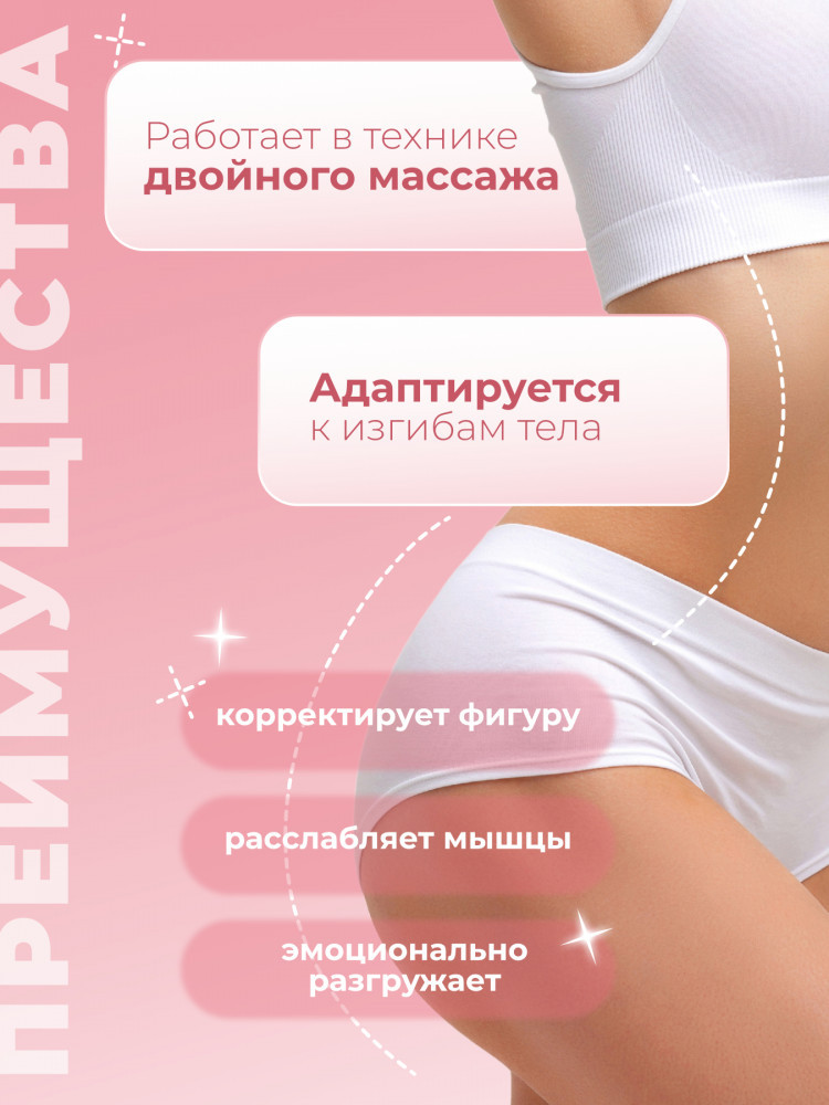 • сократить проявления целлюлита: массажёр разрушает поверхностные жировые отложения и разбивает фиброзные перегородки, формирующие «апельсиновую корку», что выравнивает подкожную структуру;