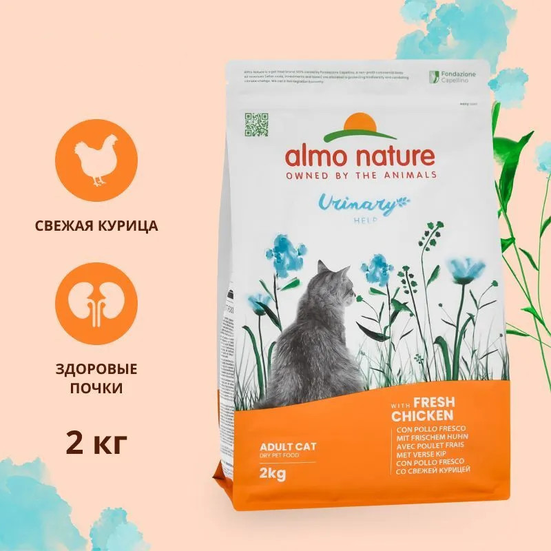 Almo Nature Корм для взрослых кошек сухой со свежей курицей для профилактики мочекаменной болезни «Urinary Help»