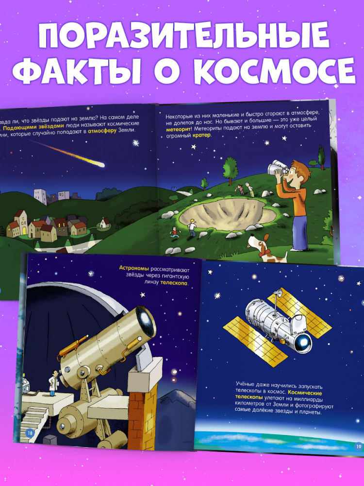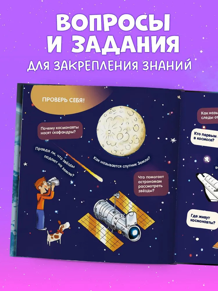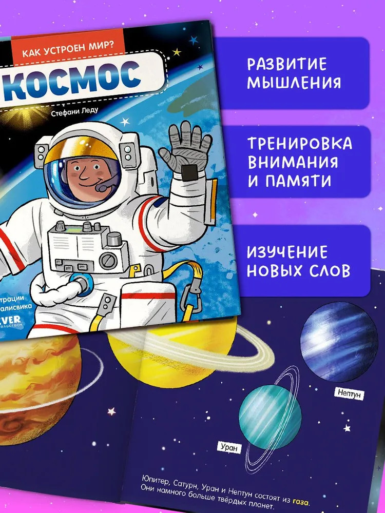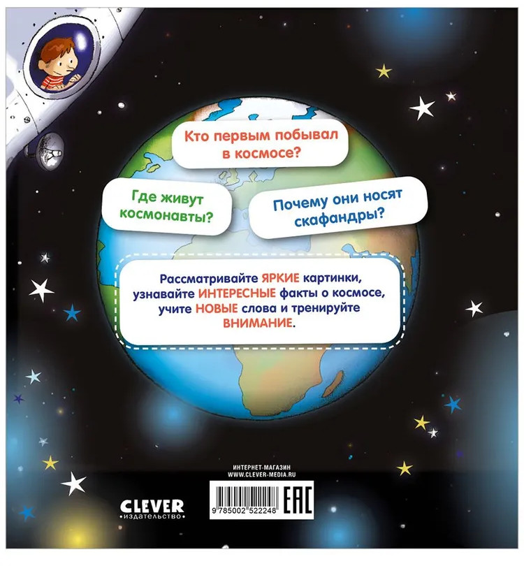 💳 Оплатить за товар можно при получении 🇰🇿 Есть бесплатная доставка по Казахстану от 1 дня 🎁 Копите бонусы с каждой покупки Серия: Как устроен мир? Книга «Космос» расскажет маленьким читателям всё самое главное и интересное о планетах Солнечной системы, космонавтах, космической станции и ответит на многие вопросы. Кто первым побывал в космосе? Где живут космонавты? Почему они носят скафандры? В этой книге для малышей простым языком рассказывается о гравитации, космических исследованиях, МКС и многом другом. Рассматривайте яркие картинки, узнавайте интересные факты о космосе, учите новые слова и тренируйте внимание. А в конце книги есть бонус — игры и задания (развивашки 2-3-4 года) для самопроверки. |