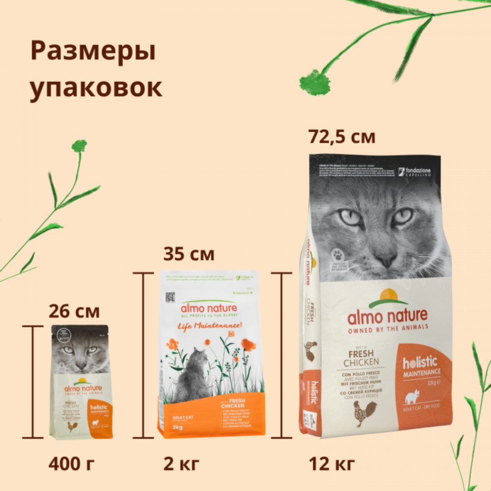 Almo Nature Корм для взрослых кошек сухой со свежей курицей «Life Maintenance»