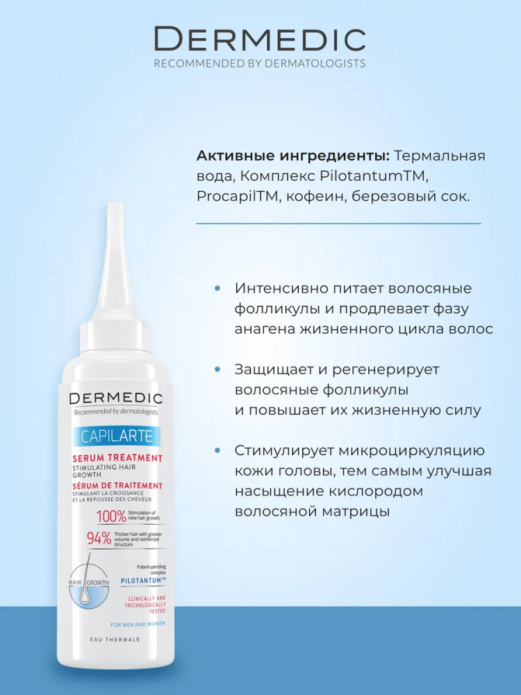 Dermedic Набор средств, стимулирующих рост волос «Hair Growth Stimulation»В данный момент этот товар отсутствует в продаже. Возможно, у нас найдется аналогичный или похожий товар здесь. Серия: Capilarte Укрепление и стимуляция роста волос — это процесс, требующий не только времени, но и системного подхода. Набор, разработанный специально для стимуляции роста волос, предлагает продуманный уход, сочетающий в себе средства с направленным действием. Он ориентирован на комплексное воздействие: улучшение состояния кожи головы, активацию волосяных фолликулов и укрепление волосяного стержня. Такой формат особенно подходит тем, кто стремится к визуальному увеличению плотности волос, восстановлению после выпадения или поддержанию стабильного роста в условиях стресса, сезонных изменений или общего ослабления структуры. |