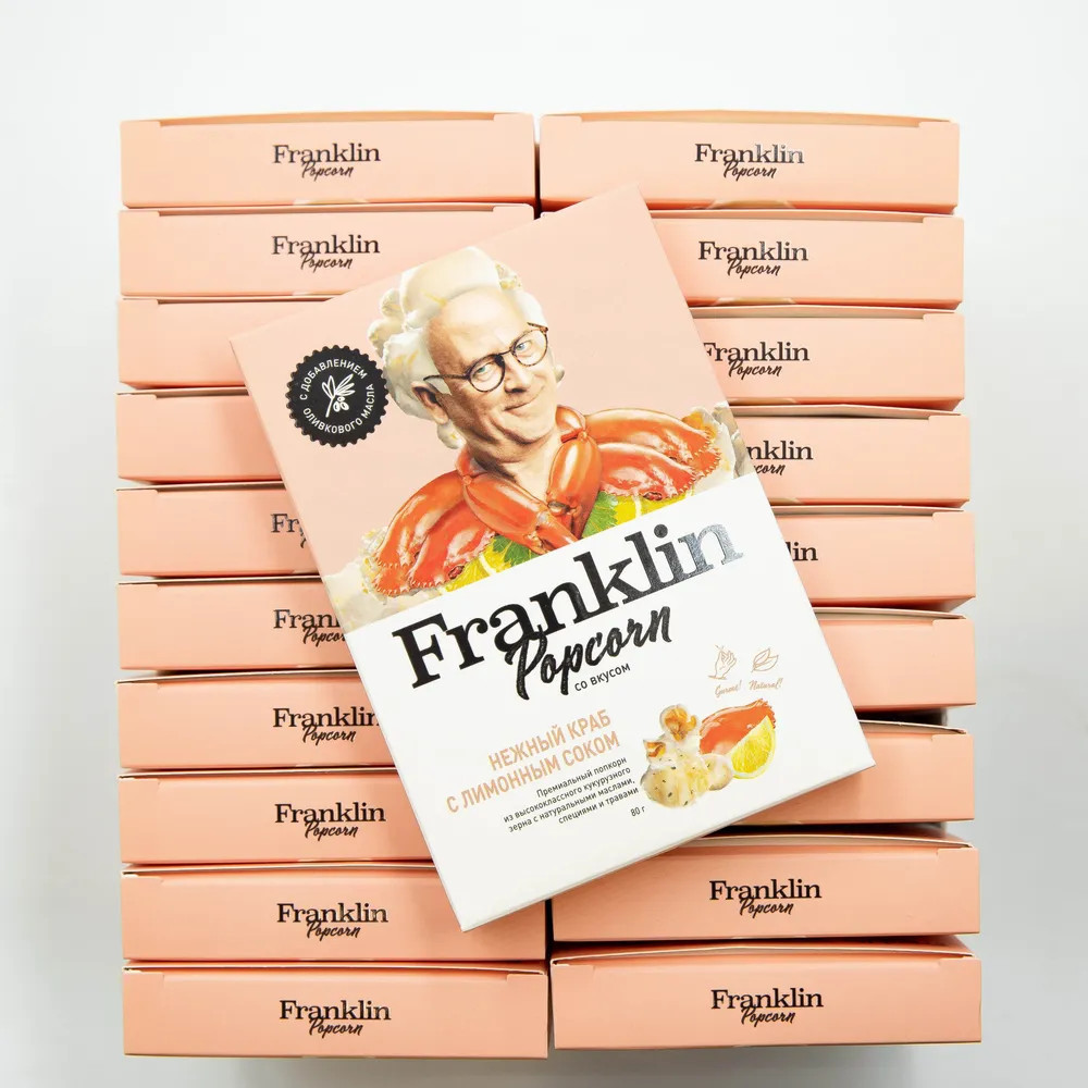 Franklin Popcorn — премиальный гурмэ-попкорн для микроволновки. Мы обожаем попкорн и, опираясь на более чем 100-летние традиции его приготовления, создали продукт, который раскрывает настоящий вкус этого лакомства — натуральный, ароматный и по-настоящему вкусный. Почему Franklin Popcorn — это особенный попкорн? В классическом попкорне для СВЧ все ингредиенты находятся внутри пакета. При экстремально высокой температуре микроволновки натуральные специи или овощи просто сгорают. Поэтому производители ограничиваются солью и устойчивыми ароматизаторами.