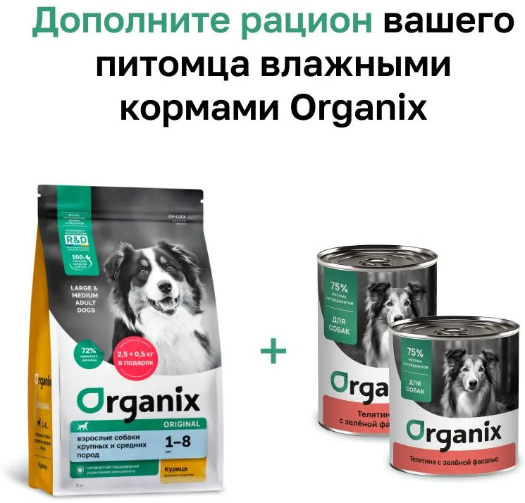 Organix Корм для взрослых собак крупных и средних пород сухой с курицей, фруктами и овощами
