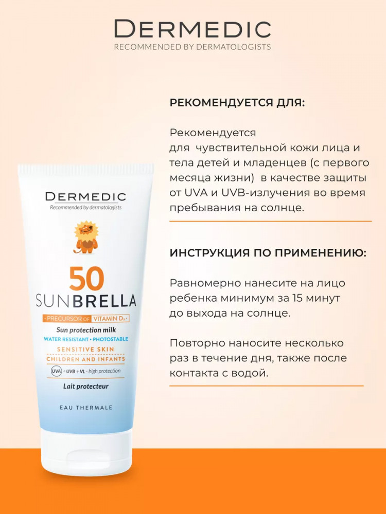 Dermedic Молочко для лица и тела детское водостойкое «Sun Protection Milk» SPF 50+398