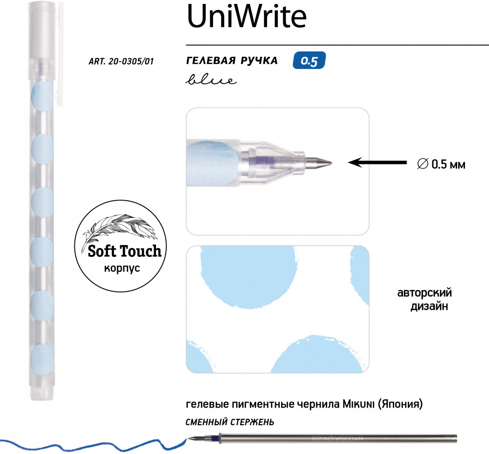 Bruno Visconti Ручка гелевая «Горошек крупный голубой»-20%
