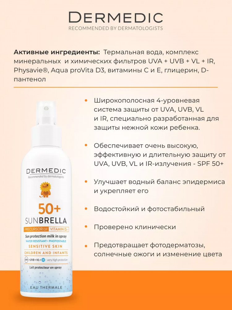 Dermedic Молочко-спрей для детей солнцезащитное «Sun Protection Spray» SPF 50+523