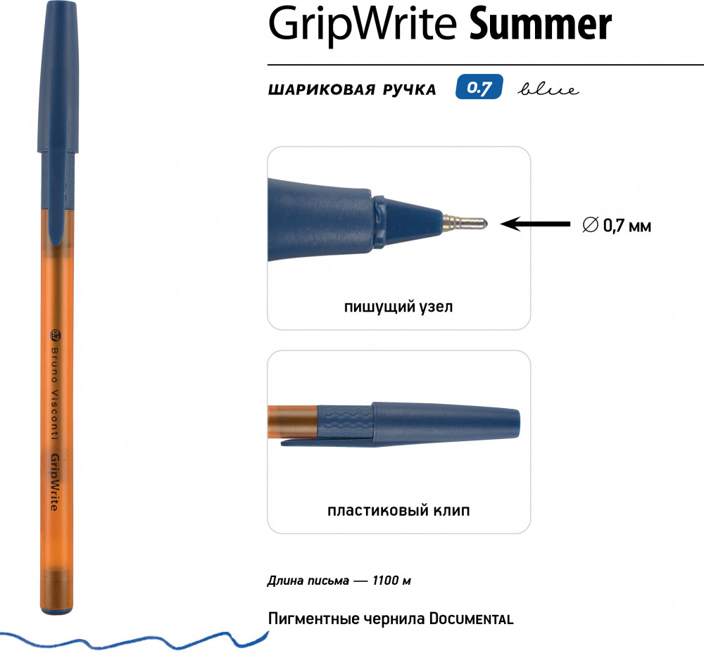 Bruno Visconti Ручка шариковая GripWrite Summer-25% +2 удобная ручка хорошо пишет