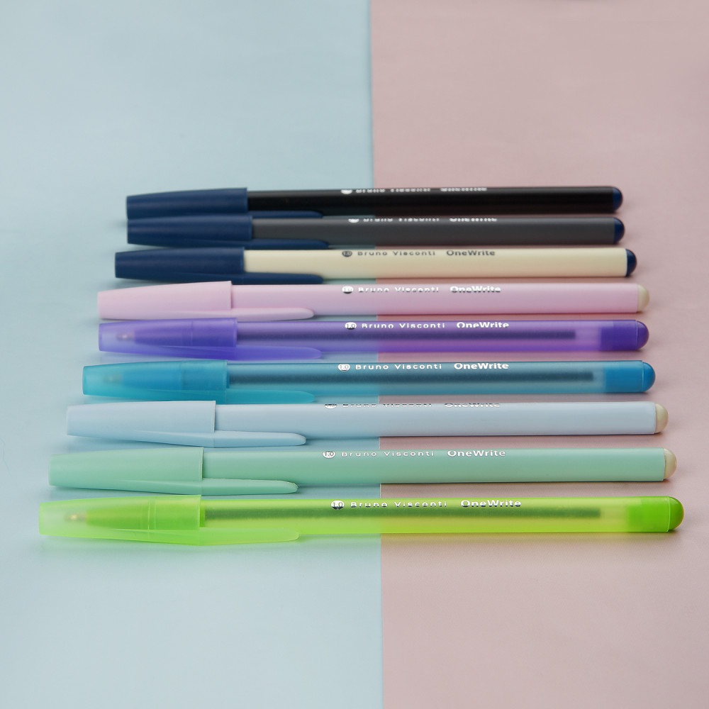 💳 Оплатить за товар можно при получении 🇰🇿 Есть бесплатная доставка по Казахстану от 1 дня 🎁 Копите бонусы с каждой покупки Одноразовая шариковая ручка серии «OneWrite» от Bruno Visconti — гарантия качественного и комфортного письма. Чернила пониженной вязкости Dokumental, произведенные в Германии и пулевидный 5-ти канальный пишущий узел диаметром 1.0 мм, обеспечивающий мягкое и комфортное письмо без усилий. Длина письма — 850 м, колпачок с клип-зажимом. |