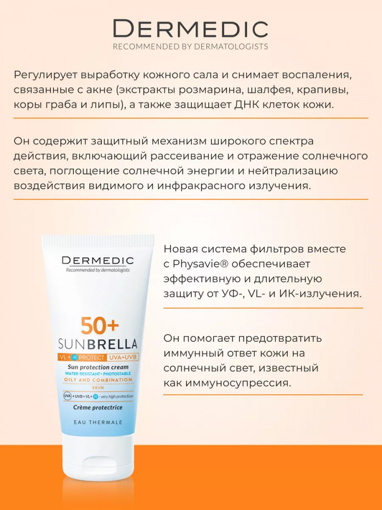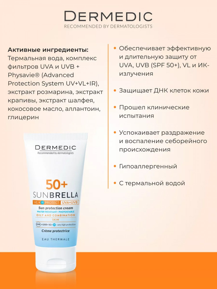 Солнцезащитный крем создан специально для комбинированной и жирной кожи. Работает через двойной механизм действия, который заключается в рассеивании и отражении излучения и поглощении солнечной энергии.
