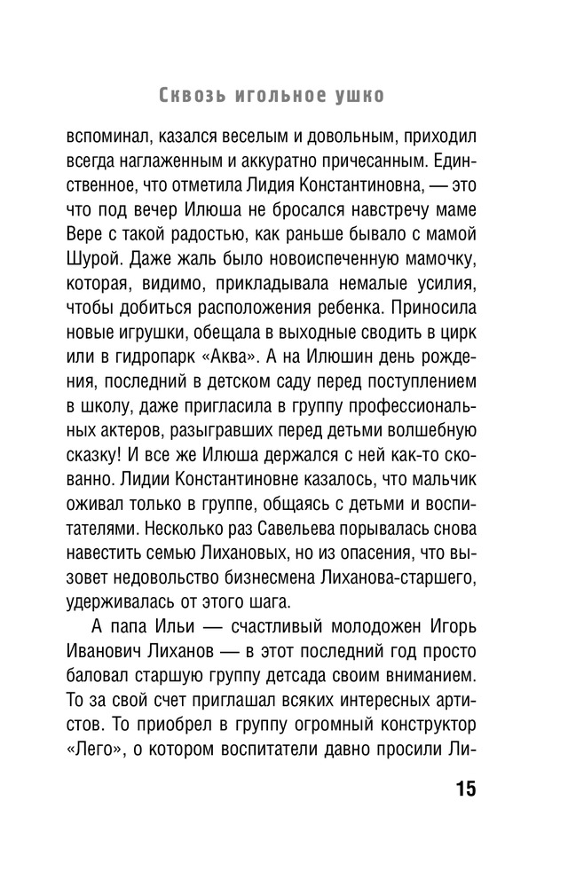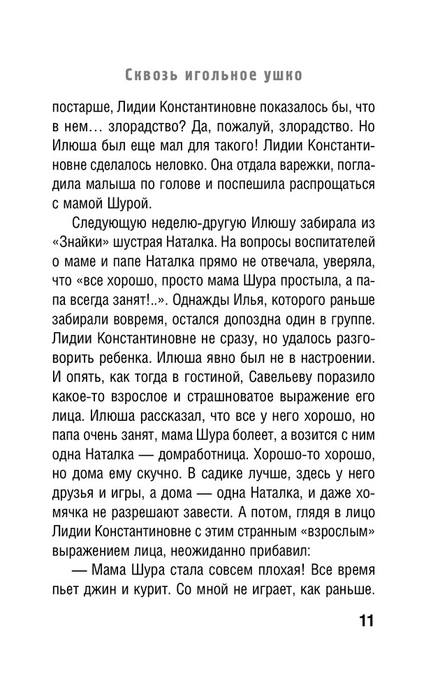 Сквозь игольное ушкоВ данный момент этот товар отсутствует в продаже. Возможно, у нас найдется аналогичный или похожий товар здесь. Серия: Городская акварель. Проза О. Литавриной Стремление людей к простому человеческому счастью напоминает полет мотыльков, безрассудно устремляющихся на огонь. Они обжигаются, мечутся вокруг манящего, но такого коварного призрачного света, обессилев, падают, чтобы, набравшись сил, снова взлететь к огню. Таковы герои произведений Ольги Литавриной. Счастье – рядом, стоит только протянуть руку и – вот оно. Увы, все не так просто. И воспитательница детского сада, привязавшаяся к осиротевшему мальчику, и бесшабашный Венька Малышев, спасающий жену-поэтессу, и незадачливый бизнесмен Леха Летуев, разочаровавшийся в женщинах, – все они стремились к любви, к жизненной гармонии и все потерпели сокрушительное поражение. Действительно, отчаянные мотыльки. Или и вправду – легче протиснуться сквозь игольное ушко… Но так ли это? Может, в этом стремлении к настоящей любви, к настоящему счастью и кроется их победа? Может, утратив многое, они сохранили в себе главное – трепетную человеческую душу? Об этом размышляет автор, приглашая своих читателей разделить ее непростые и касающиеся любого из нас раздумья. |