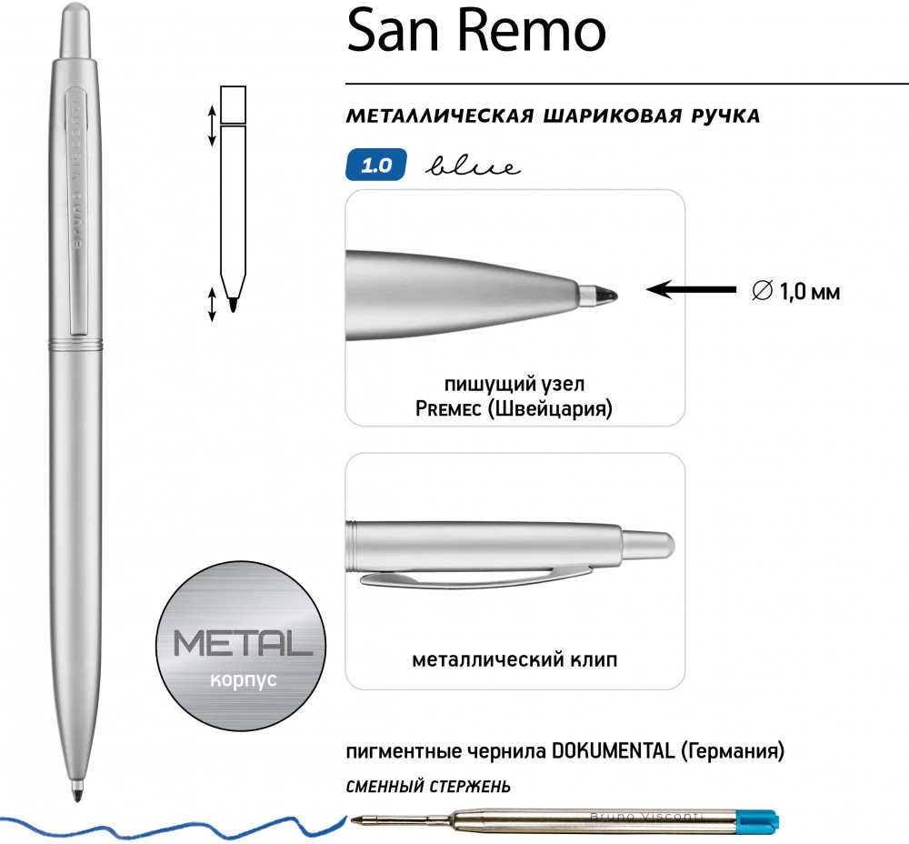 💳 Оплатить за товар можно при получении 🇰🇿 Есть бесплатная доставка по Казахстану 🎁 Копите бонусы с каждой покупки Серия: San Remo Металлическая шариковая ручка «San Remo» — аксессуар, призванный стать настоящим элементом стиля, подчеркнуть индивидуальность его владельца. Как и все подарочные ручки «Bruno Visconti», «San Remo» — обладательница стержня с пишущим узлом от швейцарского производителя Premec и перманентными чернилами немецкого производителя Dokumental. Поэтому можно быть абсолютно уверенным в качестве письма. Ручка автоматическая — стержень легко и бесперебойно выдвигается за счет мягкого нажимного механизма подачи. В ручке нет ничего лишнего, но она привлекает к себе внимание: изящна благодаря плавным линиям, эргономичному корпусу. Ручка в подарочном футляре —презентабельно, стильно, удобно. Отличная идея для подарка! |