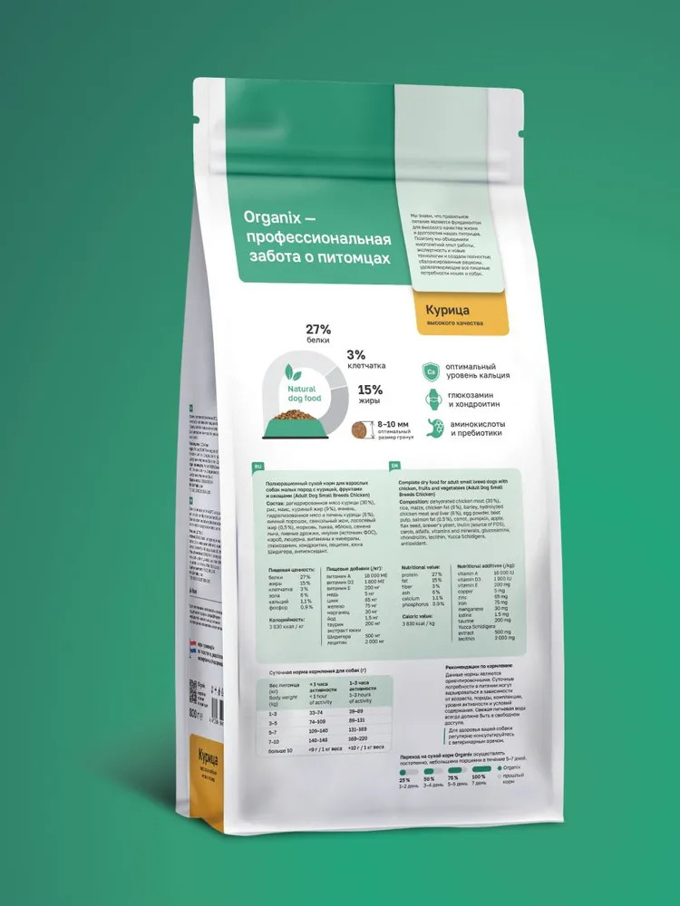 Organix Корм для взрослых собак малых пород сухой с курицей, фруктами и овощами