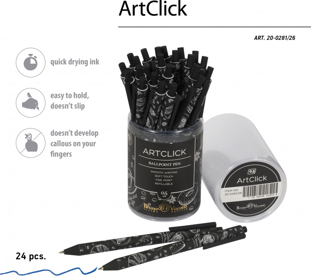 Bruno Visconti Ручка шариковая автоматическая ArtClick «Caffè nero. Time»В данный момент этот товар отсутствует в продаже. Возможно, у нас найдется аналогичный или похожий товар здесь. В коллекции ручек ArtClick от Bruno Visconti каждая ручка имеет свой индивидуальный характер. Авторский дизайн ручки «ArtClick.Caffè nero.Time» обязательно привлечет к себе внимание окружающих. Помимо потрясающего внешнего вида, ручка обладает первоклассным качеством. Мягкое письмо и тонкую линию обеспечивает пишущий узел 0.5 мм от Remec (Щвейцария) и немецкие чернила Dokumental. Длина письма — 1400 метров. |