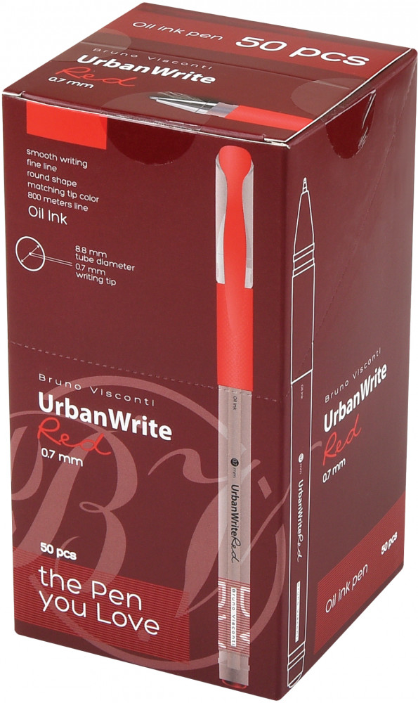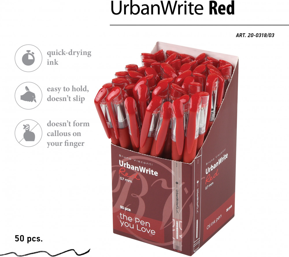 💳 Оплатить за товар можно при получении 🇰🇿 Есть бесплатная доставка по Казахстану от 1 дня 🎁 Копите бонусы с каждой покупки Серия: UrbanWrite Легкая, прозрачная ручка UrbanWrite с диаметром пишущего узла 0,7 мм и тонким корпусом 9 мм — абсолютно новая концепция в широкой линейке ручек Bruno Visconti. И как всегда — никаких компромиссов: • масляные чернила красного цвета, гарантирующие мягкое скольжение ручки по поверхности бумаги; |