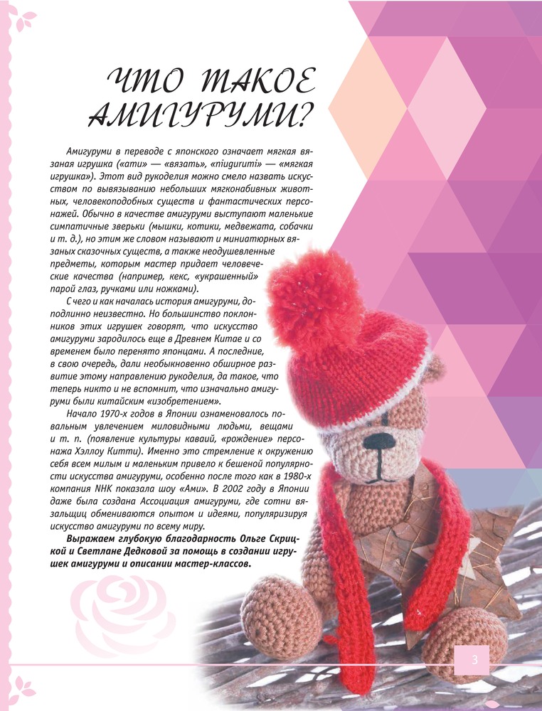 С техникой АМИГУРУМИ познакомилась совершенно случайно. В поисковике flipa нашла книги по этой теме. Книга отличная. Все расписано понятно, пошагово. Четкие, красивые фото. Большое спасибо!