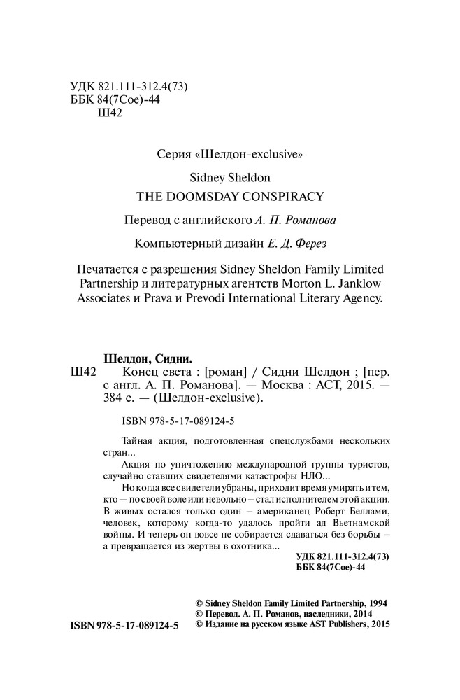 из всех произведений Шелдона «Конец света» занимает место как один из самых интересных книг автора.