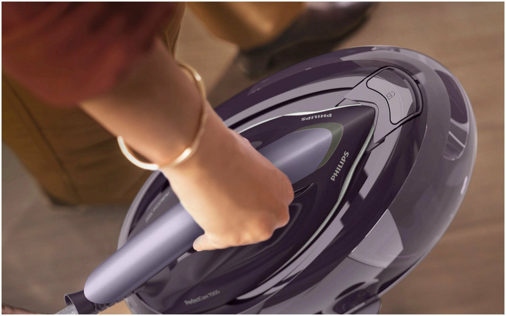 Надежная фиксация утюга на базовой станции для удобной переноски и сокращения риска случайного прикосновения к горячей подошве.