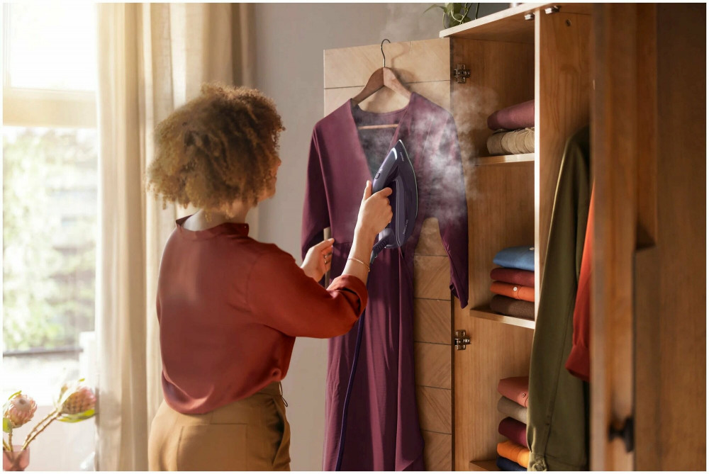 Этот утюг невероятно легкий, и его удобно держать в руке — при этом он легко скользит по ткани, а ваше запястье меньше устает. Благодаря маленькому весу 800 г утюг также подойдет для вертикального отпаривания штор или одежды.