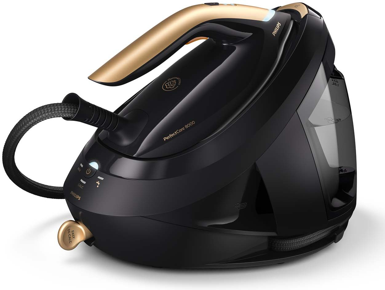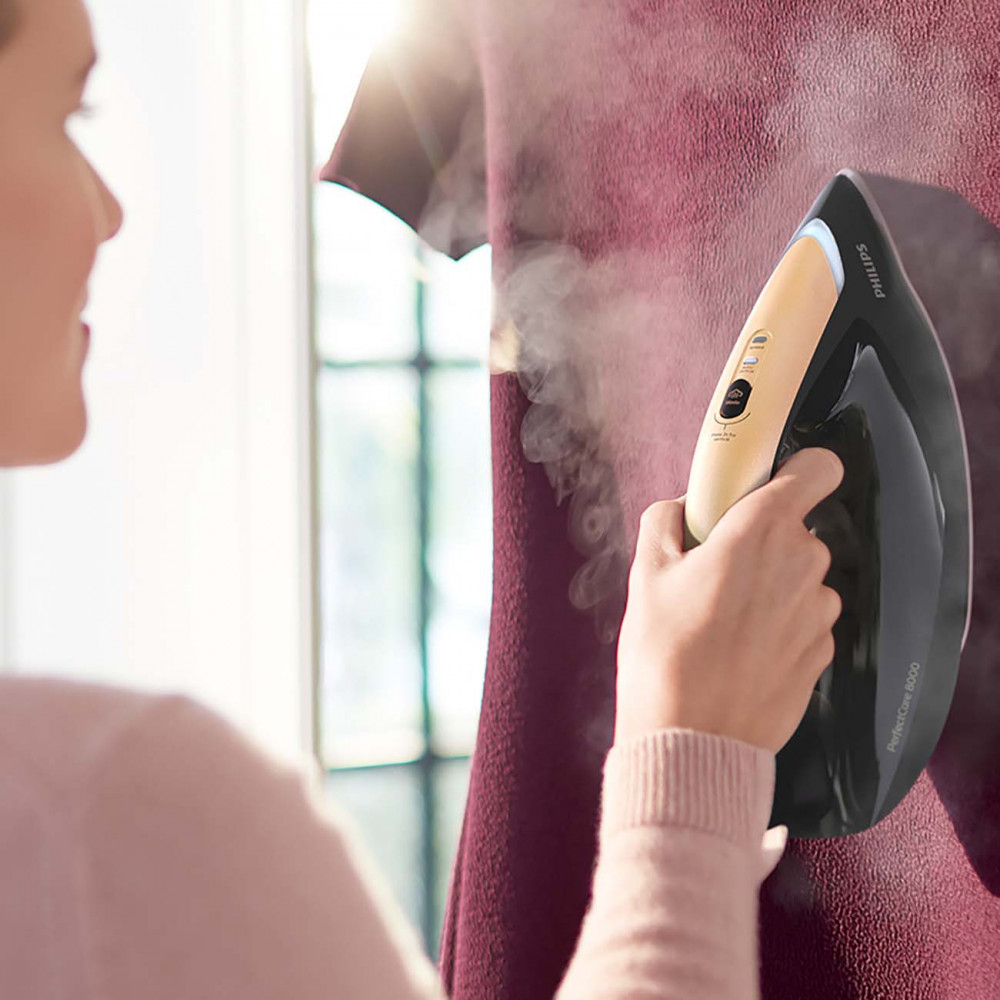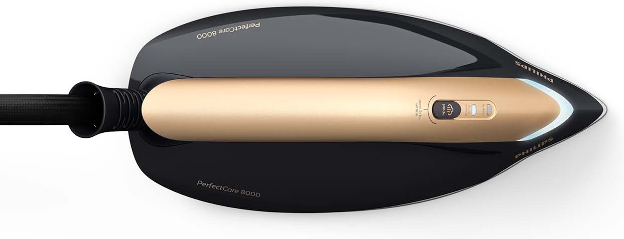 Сверхлегкий утюг PerfectCare серии 8000 предлагает глажение без лишних усилий с нашей новой технологией распознавания. Она обеспечивает вертикальное и горизонтальное глажение с автоматической подачей пара: парогенератор адаптирует количество пара в зависимости от скорости движения утюга для еще более быстрого глажения.