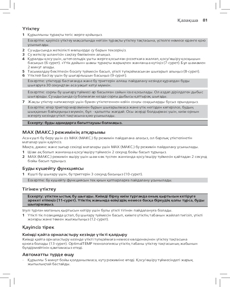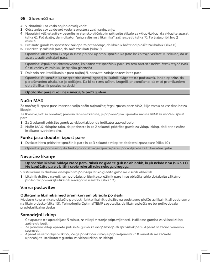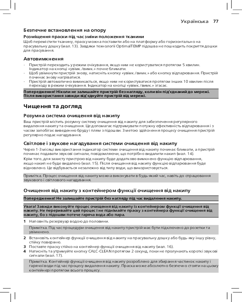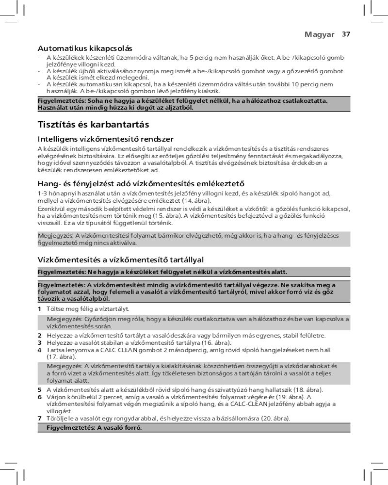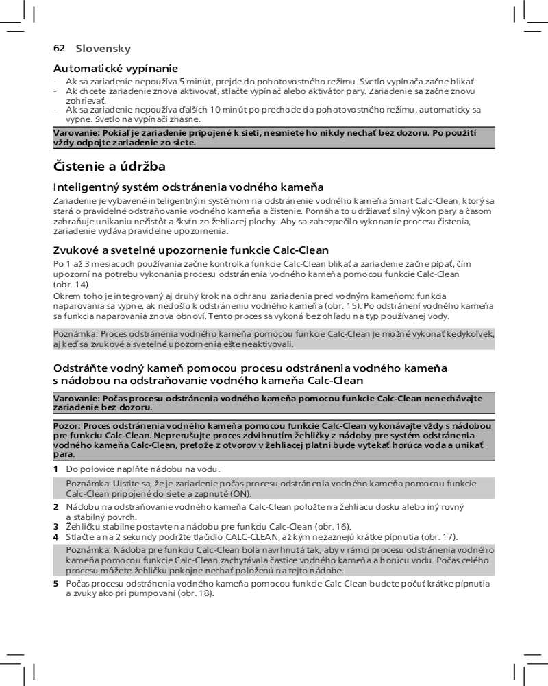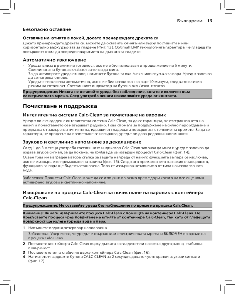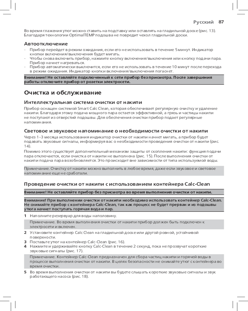 Благодаря функции автоотключения парогенератор отключается автоматически, если не используется в течение нескольких минут. Это позволяет экономить энергию и обеспечивает безопасность.
