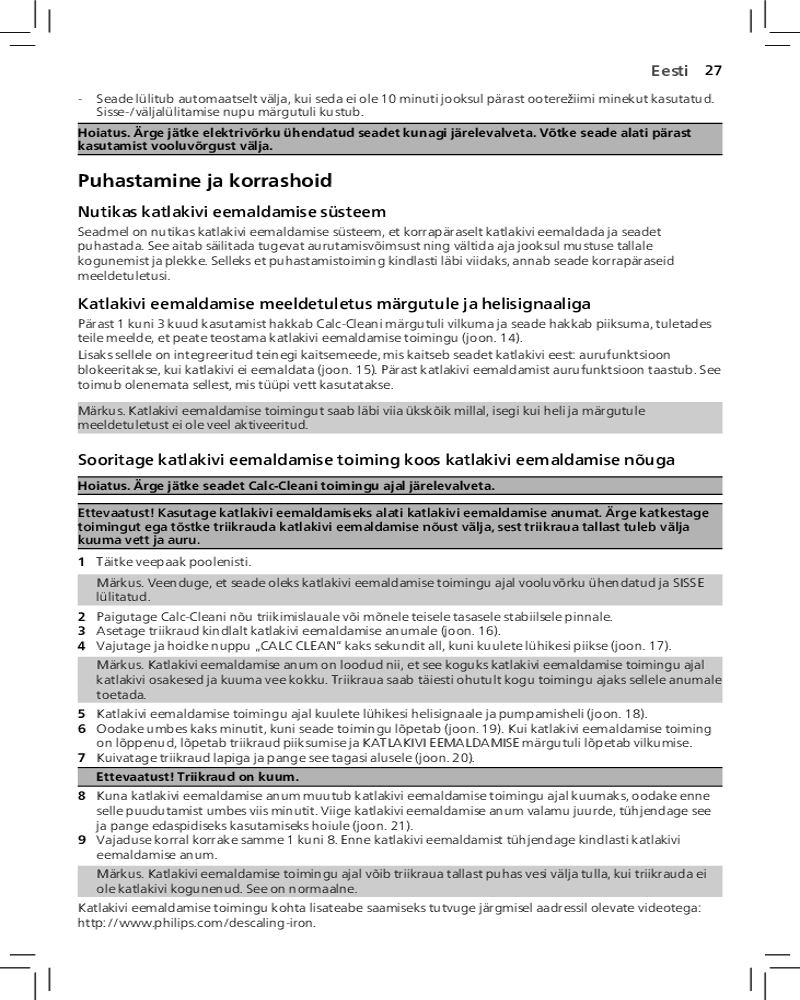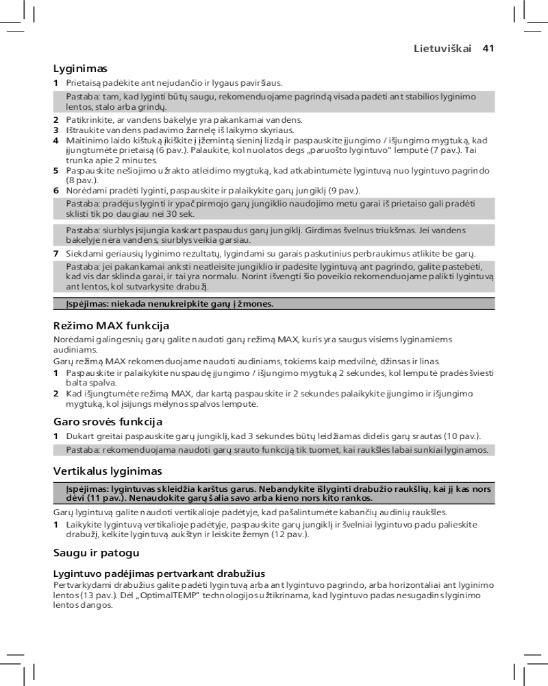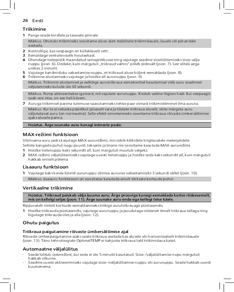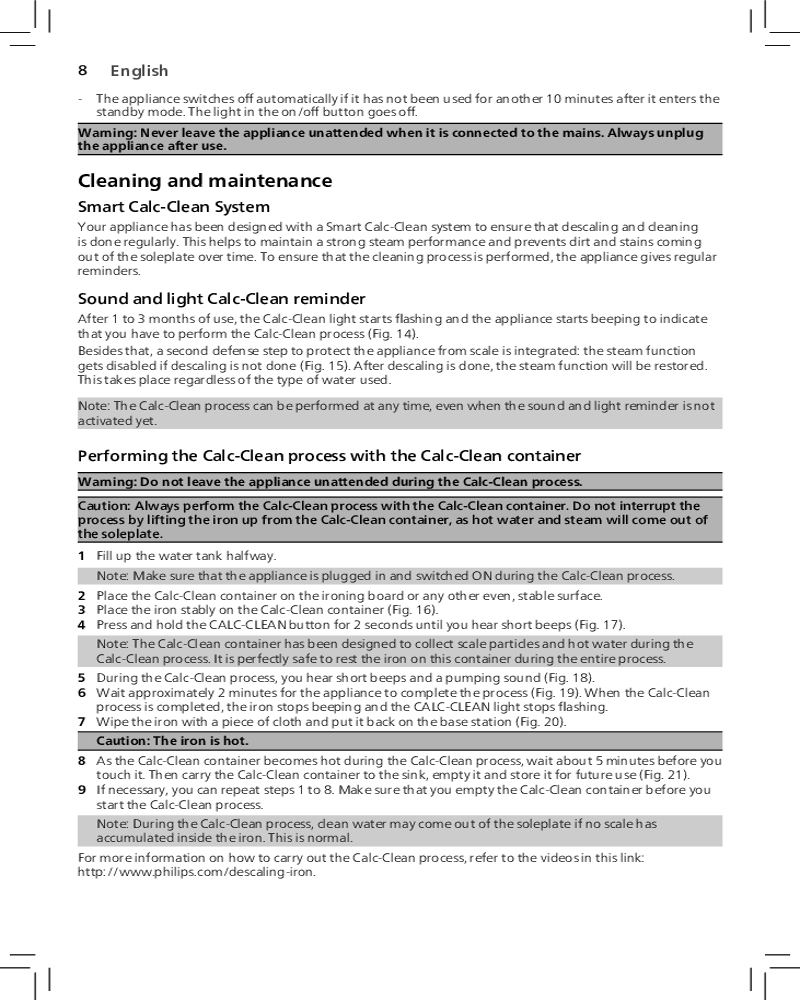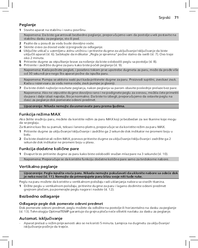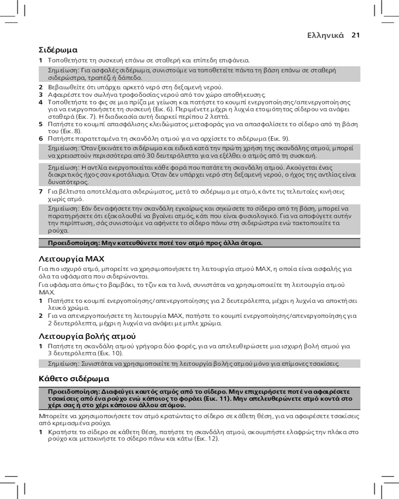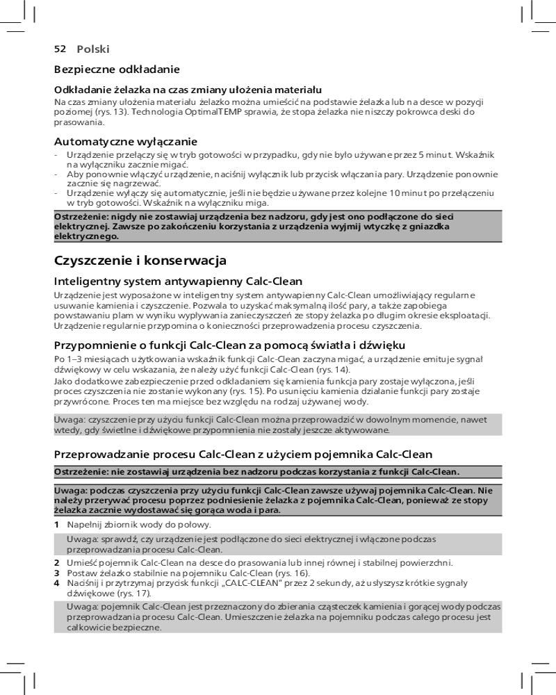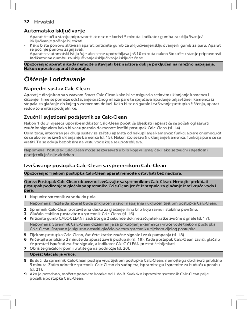 Благодаря функции автоотключения парогенератор отключается автоматически, если не используется в течение нескольких минут. Это позволяет экономить энергию и обеспечивает безопасность.