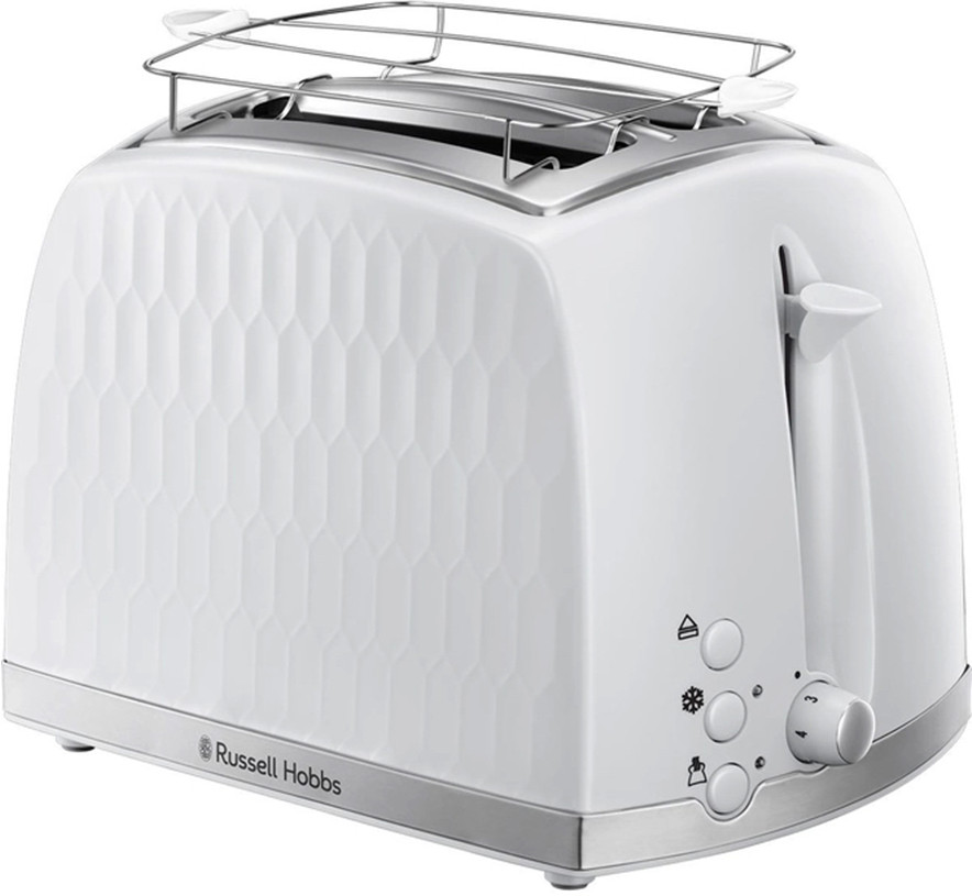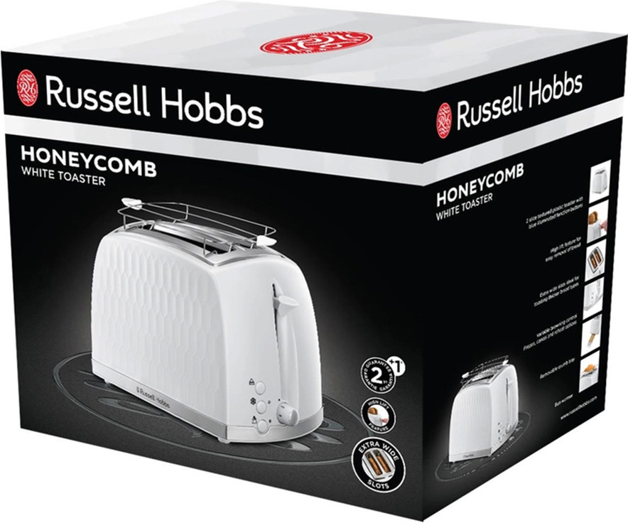 Текстурированный дизайн. Не только функциональность, но и внешний дизайн сделают тостер Russell Hobbs 26060-56 действительно полезным и красивым дополнением Вашего кухонного пространства. Максимальная функциональность. Широкие слоты гарантируют отсутствие необходимости специально тонко нарезать ломтики, вне зависимости от того, что вы предпочитаете: булочки, рогалики, лепешки или традиционный хлеб. Функция экстраподъема тостов позволяет легко доставать из горячего тостера даже самые маленькие ломтики.