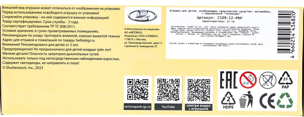 Технопарк Машина инерционная «ВАЗ-2109. Спутник»