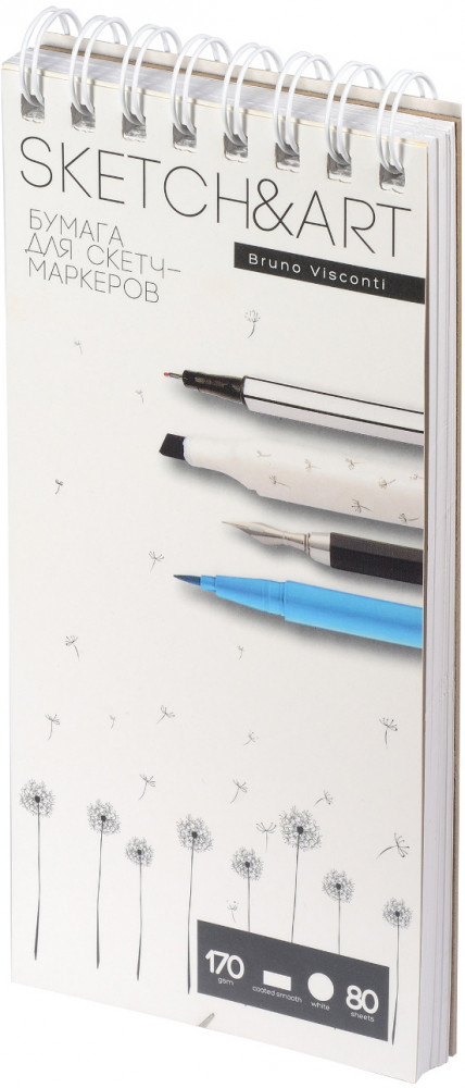 Bruno Visconti Скетчбук «SketchandArt»В данный момент этот товар отсутствует в продаже. Возможно, у нас найдется аналогичный или похожий товар здесь. Часто те, кто только начинает учиться рисовать скетчи спиртовыми маркерами, используют офисную бумагу или обычные альбомы для рисования и очень расстраиваются, когда чернила проступают на обратную сторону листа, оставляют следы на других страницах. Для таких целей бумага должна быть плотной, как в скетчбуке SketchandArt (арт. 1-80-556/03) с плотностью 170 гр/м2 и с двухсторонним мелованным покрытием. А двукратное мелованное покрытие с одной стороны листа увеличивает яркость и контрастность цвета и уменьшает расход чернил. Благодаря гладкой поверхности время высыхания маркеров увеличивается, что дает большой простор для создания градиентов и сложных переходов. Маркер легко скользит по поверхности листа, рисовать — одно удовольствие! 80 листов превосходного качества скреплены гребнем по верхнему краю, что дает возможность переворачивать их на 180 градусов. Удобный формат (105×220 мм) позволяет иметь скетчбук всегда под рукой, а жесткая подложка делать зарисовки и наброски на весу. Скетчбук приятно держать в руках благодаря бархатистому покрытию Soft Tоuch, а лаконичный, но узнаваемый дизайн серии привлекает к себе внимание. |