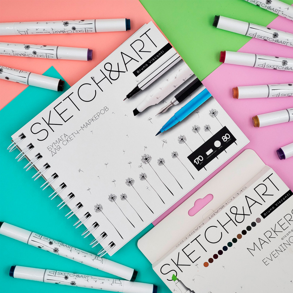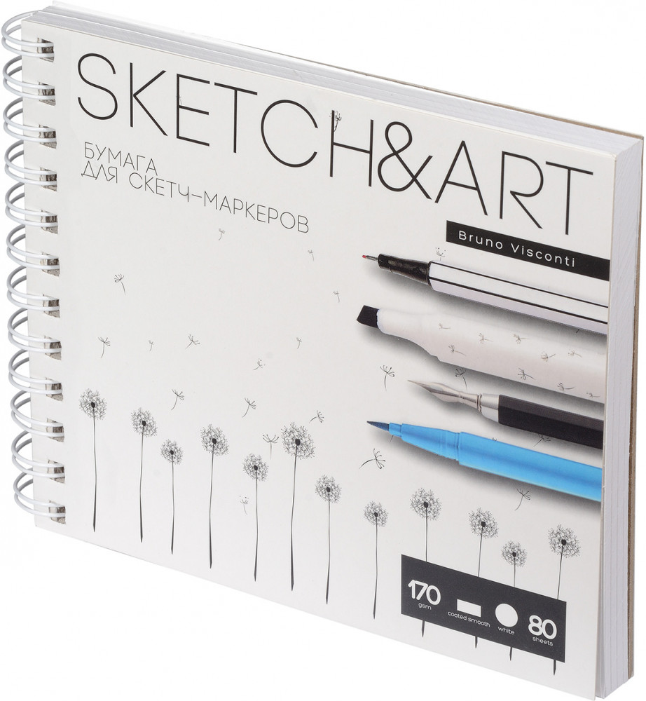 Bruno Visconti Скетчбук «SketchandArt»В данный момент этот товар отсутствует в продаже. Возможно, у нас найдется аналогичный или похожий товар здесь. Часто те, кто только начинает учиться рисовать скетчи спиртовыми маркерами, используют офисную бумагу или обычные альбомы для рисования и очень расстраиваются, когда чернила проступают на обратную сторону листа, оставляют следы на других страницах. Для таких целей бумага должна быть плотной, как в скетчбуках серии SketchandArt с плотностью 170 гр/м2 и с двухсторонним мелованным покрытием. А двукратное мелованное покрытие с одной стороны листа увеличивает яркость и контрастность цвета и уменьшает расход чернил. Благодаря гладкой поверхности время высыхания маркеров увеличивается, что дает большой простор для создания градиентов и сложных переходов. Маркер легко скользит по поверхности листа, рисовать — одно удовольствие! 80 листов превосходного качества скреплены гребнем по верхнему краю, что дает возможность переворачивать их на 180 градусов. Удобный формат позволяет иметь скетчбук всегда под рукой, а жесткая подложка делать зарисовки и наброски на весу. Скетчбук приятно держать в руках благодаря бархатистому покрытию Soft Tоuch, а лаконичный, но узнаваемый дизайн серии привлекает к себе внимание. |