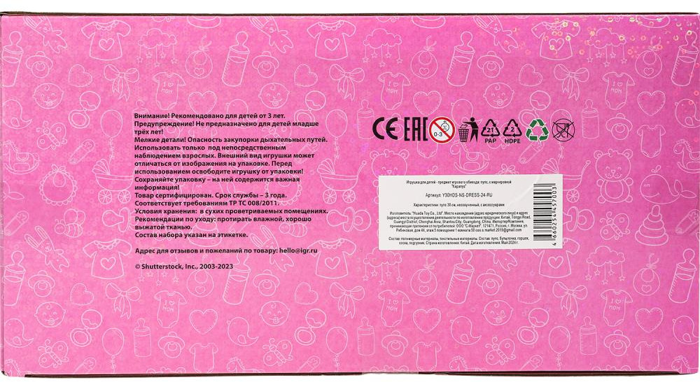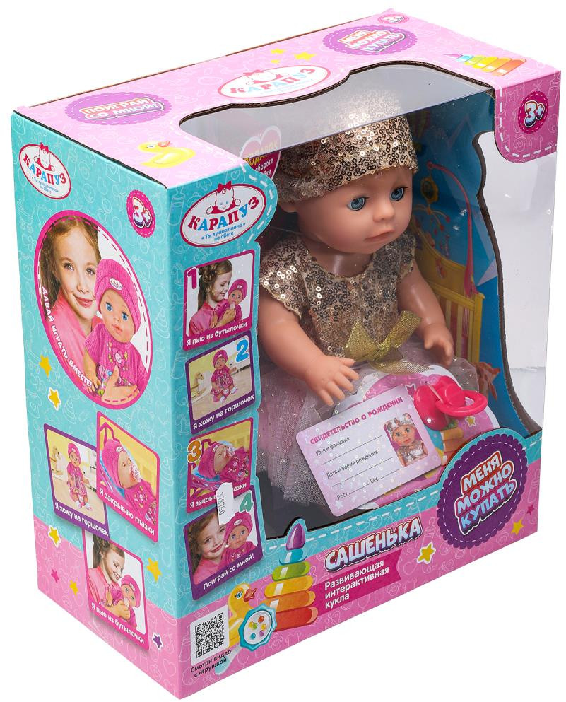 Карапуз Пупс развивающий «Сашенька»В данный момент этот товар отсутствует в продаже. Возможно, у нас найдется аналогичный или похожий товар здесь. Развивающий пупс «Сашенька» ТМ «Карапуз» станет прекрасным подарком для маленькой принцессы. Этот милый пупс с детально проработанным личиком обязательно понравится вашей малышке. Куколка одета в нарядное пышное платье, украшенное пайетками. На голове — шапочка в тон с забавными ушками. Одежда легко снимается и надевается. Очаровательный пупс непременно вдохновит девочку на множество интересных сюжетов для игр, тем более его можно купать в воде, кормить и сажать на горшок. Благодаря компактному размеру игрушку можно повсюду брать с собой. Игра с пупсом ТМ «Карапуз» учит ребёнка заботиться об окружающих, быть ответственным и внимательным, а также развивает: воображение, память, социально-коммуникативные навыки и моторику. |