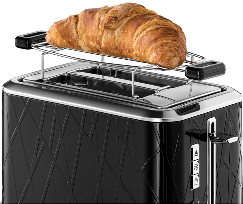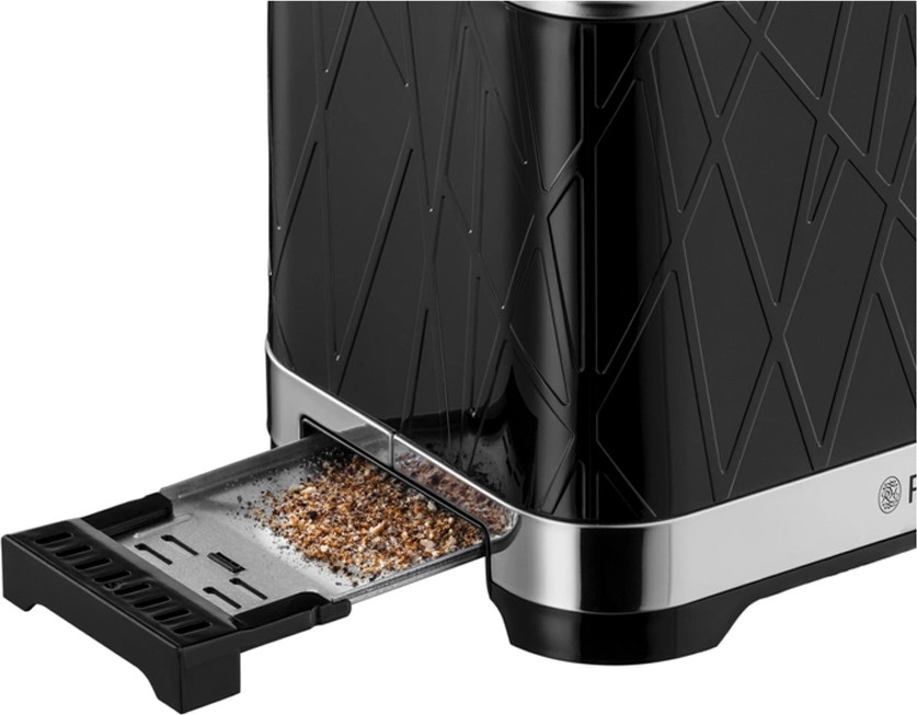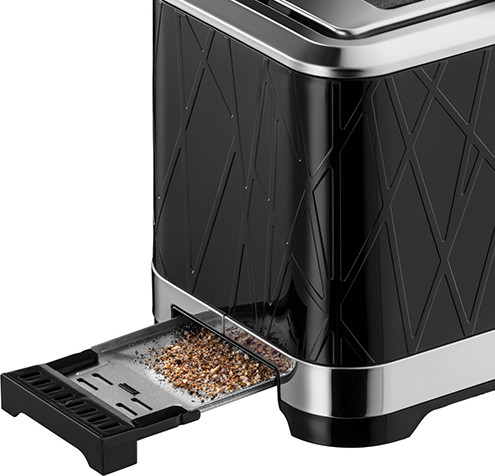 Корпус из текстурированного пластика со вставками из полированной нержавеющей стали. Создайте стильный образ на своей кухне с тостером Russell Hobbs 28091-56 . Этот тостер с текстурированным дизайном премиум-класса в ярком черном цвете с акцентами из нержавеющей стали займет почетное место на любой столешнице. Функция «Экстра- подъем». Специально для маленьких тостов есть функция экстра-подъема — вы не обожжете руки, вынимая готовый продукт. Все крошки собираются в специальном поддоне, который легко извлекается из корпуса. Если вы хотите подогреть остывшие тосты, не поджаривая их, для этого тоже есть специальная функция. С ее помощью можно также освежить зачерствевшие ломтики хлеба.
