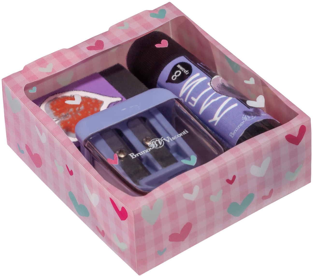 Bruno Visconti Набор подарочный канцелярский «Fresh and fruity. Инжир»В данный момент этот товар отсутствует в продаже. Возможно, у нас найдется аналогичный или похожий товар здесь. Хотите, чтобы о ваших манерах, вкусе говорили только в превосходной форме? Выбирайте в качестве презента подарочные наборы Bruno Visconti. Ведь все товары бренда отличаются высокими потребительскими свойствами и стильным дизайном, идущим в ногу со временем. В набор входит: мягкий пластиковый ластик, неабразивный. Идеален для удаления разного типа графита (H-3H, HB, B-3B) на различных сортах бумаги. Нетоксичен. Яркий красочный картонный держатель привлекает внимание и предохраняет ластик от загрязнения; клей-карандаш на PVP-основе, не деформирует бумагу, высыхает без образования пятен, не имеет резкого запаха, гарантирует более прочное склеивание материалов, сохраняет свои клеящие свойства в течение длительного времени (до 3-х лет); многофункциональная точилка с контейнером для карандашей различного диаметра — стандартного и увеличенного. Точилка обладает дополнительной опцией — интерактивом «Лабиринт», который способствует развитию логического мышления, воображения, умения концентрировать внимание. Главная задача — найти выход из лабиринта, перекатывать шарик, преодолевая препятствия. Точилка выполнена из качественных материалов: пластика и металла. |