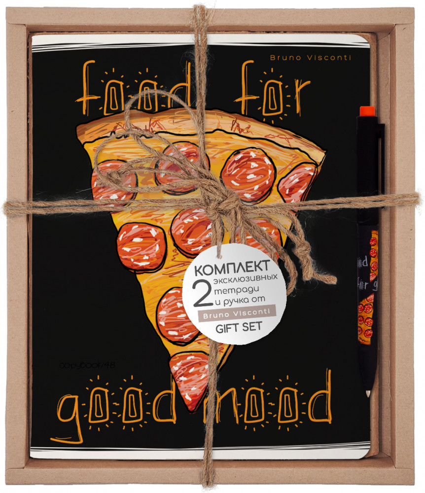 Bruno Visconti Набор подарочный «Food in black. Пицца»В данный момент этот товар отсутствует в продаже. Возможно, у нас найдется аналогичный или похожий товар здесь. Общие тетради серии «Food in black» станут надежным помощником в освоении знаний для старших школьников и студентов. Стильный дизайн обязательно привлечет внимание друзей и подруг и никого не оставит равнодушным. Обложка и блок выполнены из высококачественных материалов: мелованный картон 190 г/кв.м, белая офсетная бумага плотностью 60 г/кв.м. В отделке обложки используется пленка для ламинации SoftTouch, которая защищает обложку от механических повреждений, вызывает приятные тактильные ощущения и увеличивает срок службы тетради. Обложка с блоком надежно скреплены металлическими скобами. Дополнительным элементом оформления тетради является наличие второй обложки, оформленной в одной концепции с основным дизайном и с аккуратной линовкой для подписи тетради. Дополняет комплект тетрадей тактильно приятная, имеющая надежный и простой нажимной механизм с бесперебойной подачей стержня ручка «FunClick» от Bruno Visconti. Корпус изготовлен из ABS-пластика, что обеспечивает высокую ударопрочность, износостойкость. Бархатное покрытие Soft Touch гарантирует комфортное письмо, рука не устанет при продолжительной работе. Удобный пластиковый клип на колпачке позволяет закрепить ручку, например, на ежедневнике, тетради, блокноте. Мягкость, высокое качество письма гарантированы производителями пишущего узла — всемирно известной компанией Premec (Швейцария) и чернил — немецким производителем Dokumental. |