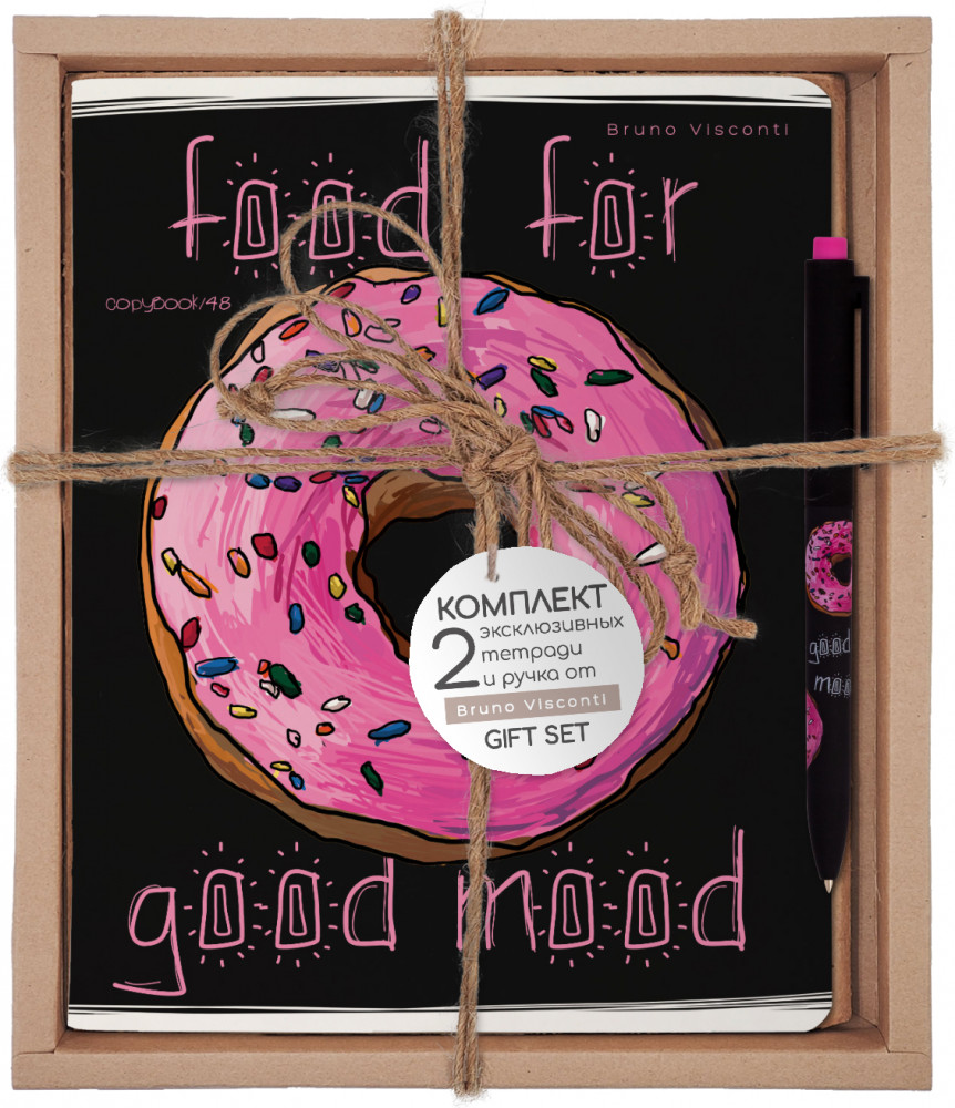 Bruno Visconti Набор подарочный «Food in black. Пончик донатс»В данный момент этот товар отсутствует в продаже. Возможно, у нас найдется аналогичный или похожий товар здесь. Общие тетради серии «Food in black» станут надежным помощником в освоении знаний для старших школьников и студентов. Стильный дизайн обязательно привлечет внимание друзей и подруг и никого не оставит равнодушным. Обложка и блок выполнены из высококачественных материалов: мелованный картон 190 г/кв.м, белая офсетная бумага плотностью 60 г/кв.м. В отделке обложки используется пленка для ламинации SoftTouch, которая защищает обложку от механических повреждений, вызывает приятные тактильные ощущения и увеличивает срок службы тетради. Обложка с блоком надежно скреплены металлическими скобами. Дополнительным элементом оформления тетради является наличие второй обложки, оформленной в одной концепции с основным дизайном и с аккуратной линовкой для подписи тетради. Дополняет комплект тетрадей тактильно приятная, имеющая надежный и простой нажимной механизм с бесперебойной подачей стержня ручка «FunClick» от Bruno Visconti. Корпус изготовлен из ABS-пластика, что обеспечивает высокую ударопрочность, износостойкость. Бархатное покрытие Soft Touch гарантирует комфортное письмо, рука не устанет при продолжительной работе. Удобный пластиковый клип на колпачке позволяет закрепить ручку, например, на ежедневнике, тетради, блокноте. Мягкость, высокое качество письма гарантированы производителями пишущего узла — всемирно известной компанией Premec (Швейцария) и чернил — немецким производителем Dokumental. |