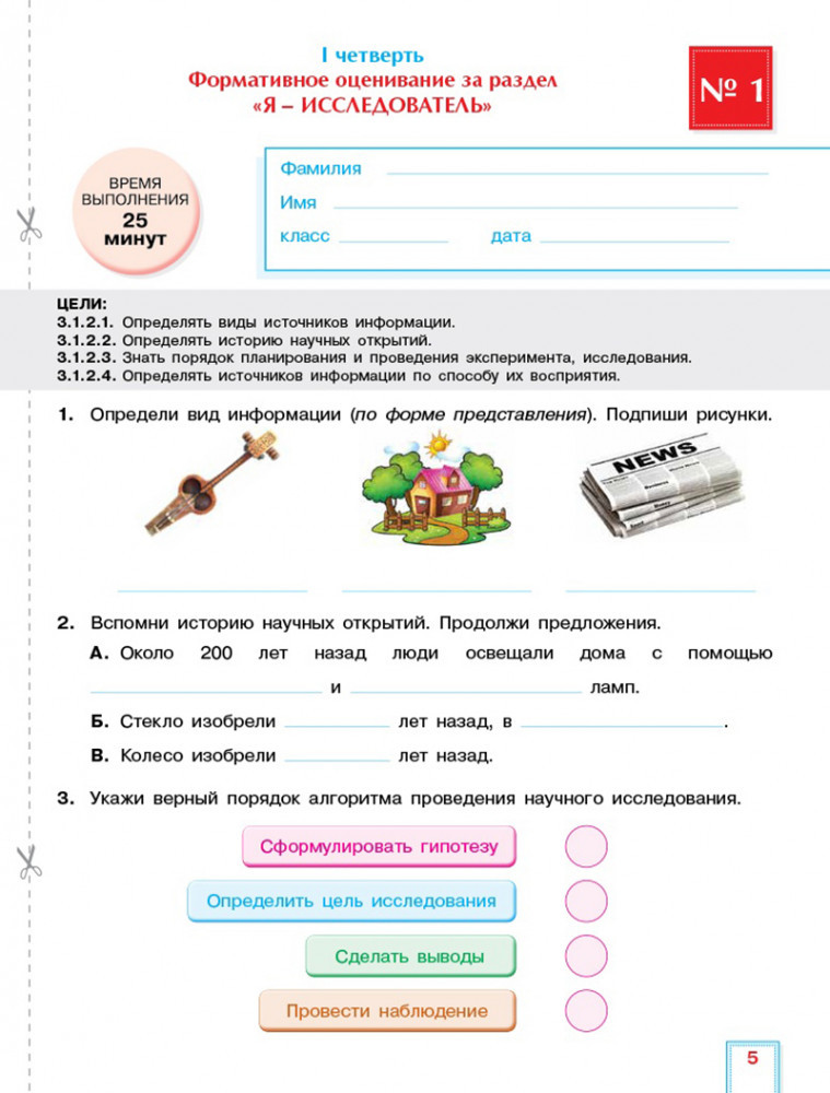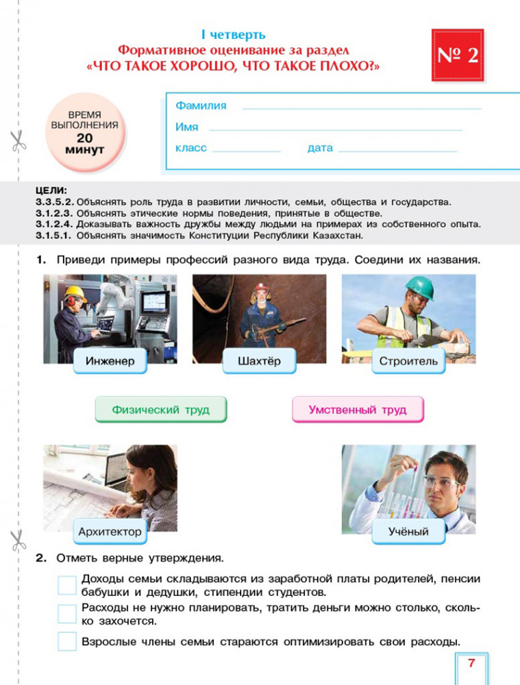 Пособие содержит таблицы, где можно фиксировать динамику развития подготовленности каждого обучающегося, что важно в поддержании его целенаправленной активности и самостоятельности в достижении цели. В процессе фиксирования осуществляется сбор доказательств, демонстрирующих знания и навыки обучающихся согласно содержанию учебной программы. Для оказания помощи учителю в принятии объективного решения относительно каждого обучающегося к заданиям разработаны дескрипторы. Учебные задания СОР и СОЧ для оценивания достижений обучающихся включают пройденные (изученные) цели обучения. Критерии оценивания соответствуют содержанию и целям обучения.