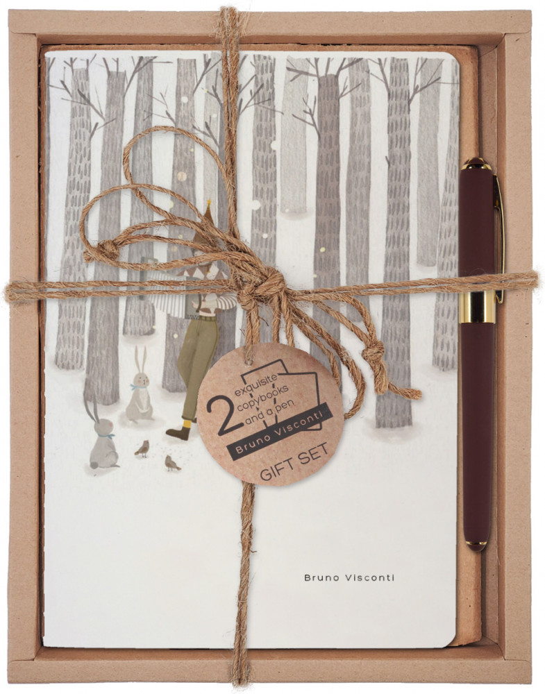 Bruno Visconti Набор подарочный «Winter forest»В данный момент этот товар отсутствует в продаже. Возможно, у нас найдется аналогичный или похожий товар здесь. Подарочный набор «Winter forest» от Bruno Visconti. Элегантный подарок со сказочным зимним настроением. В наборе две тетради в клетку формата А5 и ручка в тон. Упакован в подложку из крафтового картона, перевязанную джутовым шпагатом. Обложка с эксклюзивным дизайном изготовлена из плотного мелованного картона с матовой ламинацией «Soft Touch», поэтому тетрадь мягкая и приятная в руках. На обложке изображен зимний лес, зайцы и волшебник-музыкант. Бумажный блок из качественной бумаги бежевого цвета скреплен декоративной нитью. Набор дополняет ручка в коричневом корпусе с фурнитурой золотого цвета. |