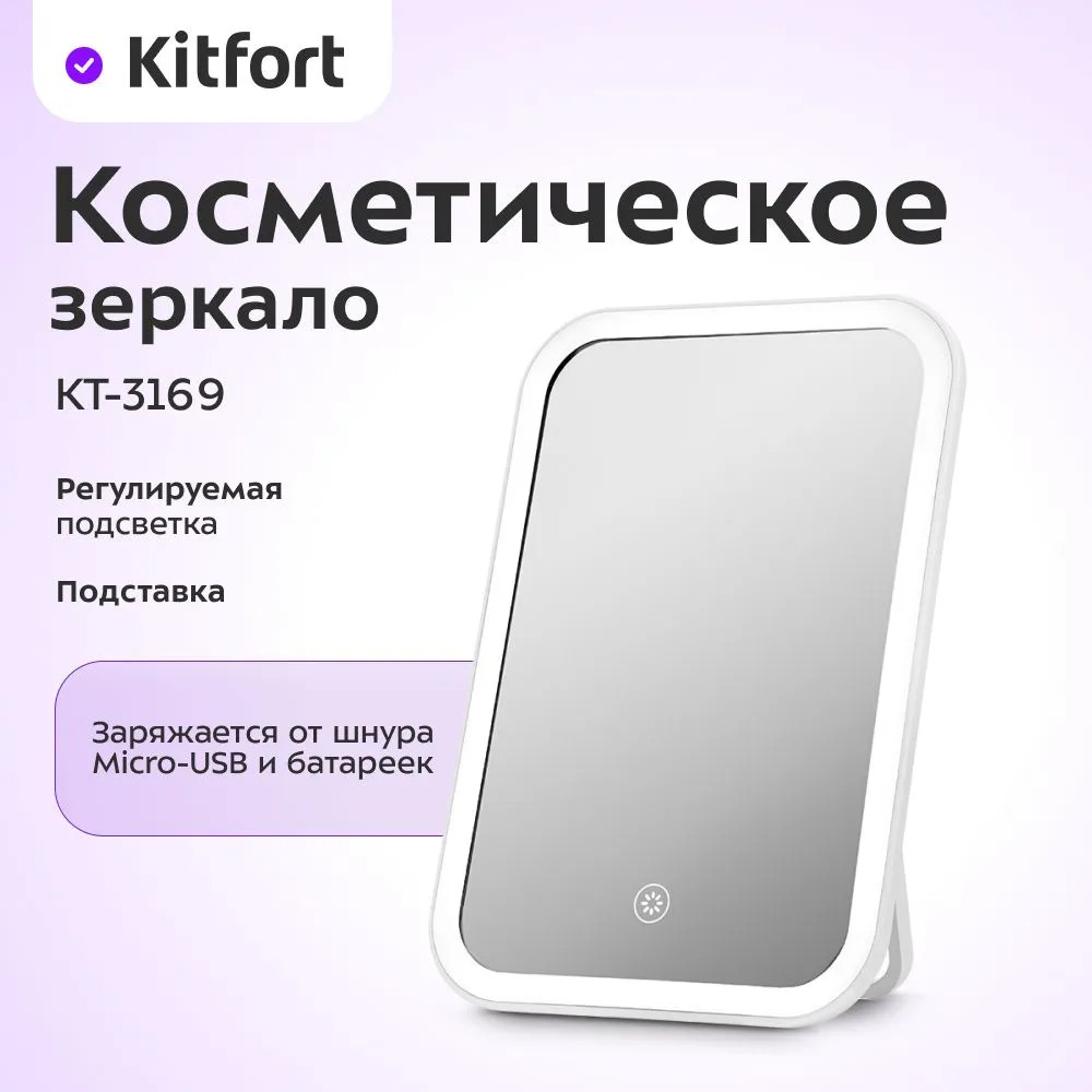 У косметического зеркала КТ-3169 есть удобная подставка, благодаря которой зеркало можно расположить в комфортном для вас месте и его не нужно держать в руке.