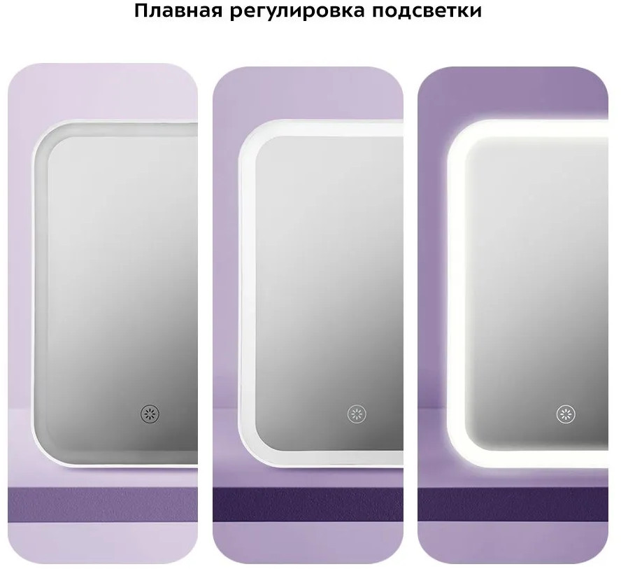 Контурная подсветка зеркала с плавной регулировкой яркости поможет лучше разглядеть все мелкие детали даже в условиях недостаточного освещения в помещении. Чтобы регулировать яркость подсветки, необходимо нажать и удерживать кнопку «Подсветка».