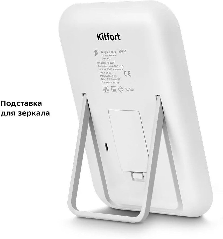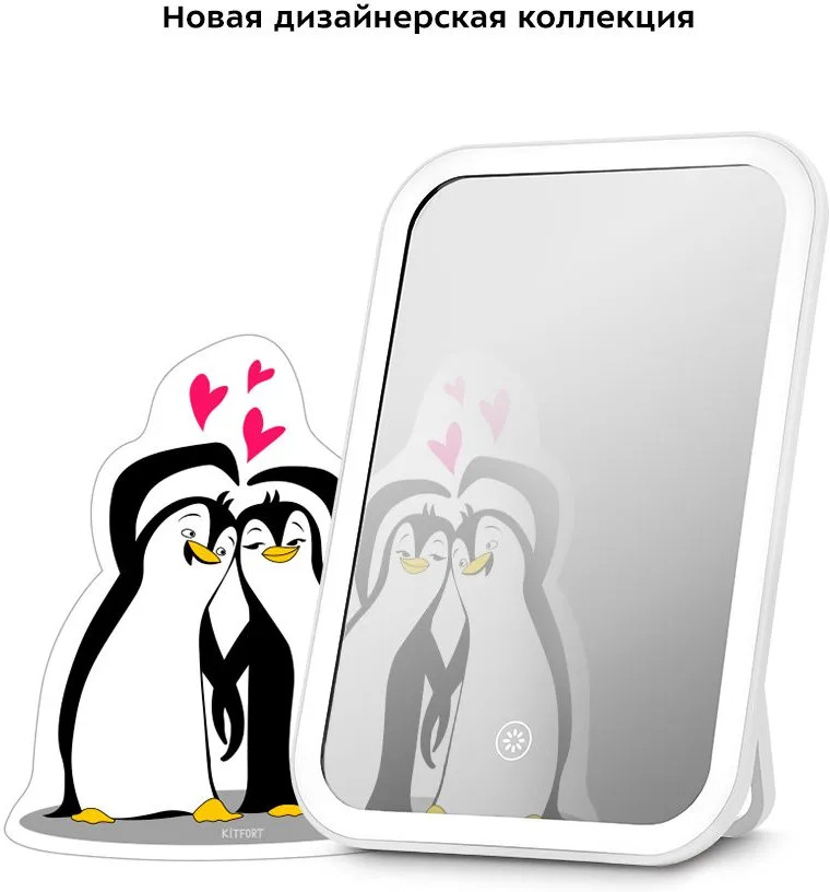 Зеркало работает при подключении к источнику питания или от 3 батареек типа ААА. Это позволяет пользоваться зеркалом и включать подсветку в любом удобном месте. Новая дизайнерская коллекция Зеркало КТ-3169 выполнено в дизайне коллекции «Penguin Pack», который отражает энергию и яркость нового маскота — пингвина по имени Питер. В комплекте с прибором вы найдёте креативный магнит с этим персонажем.