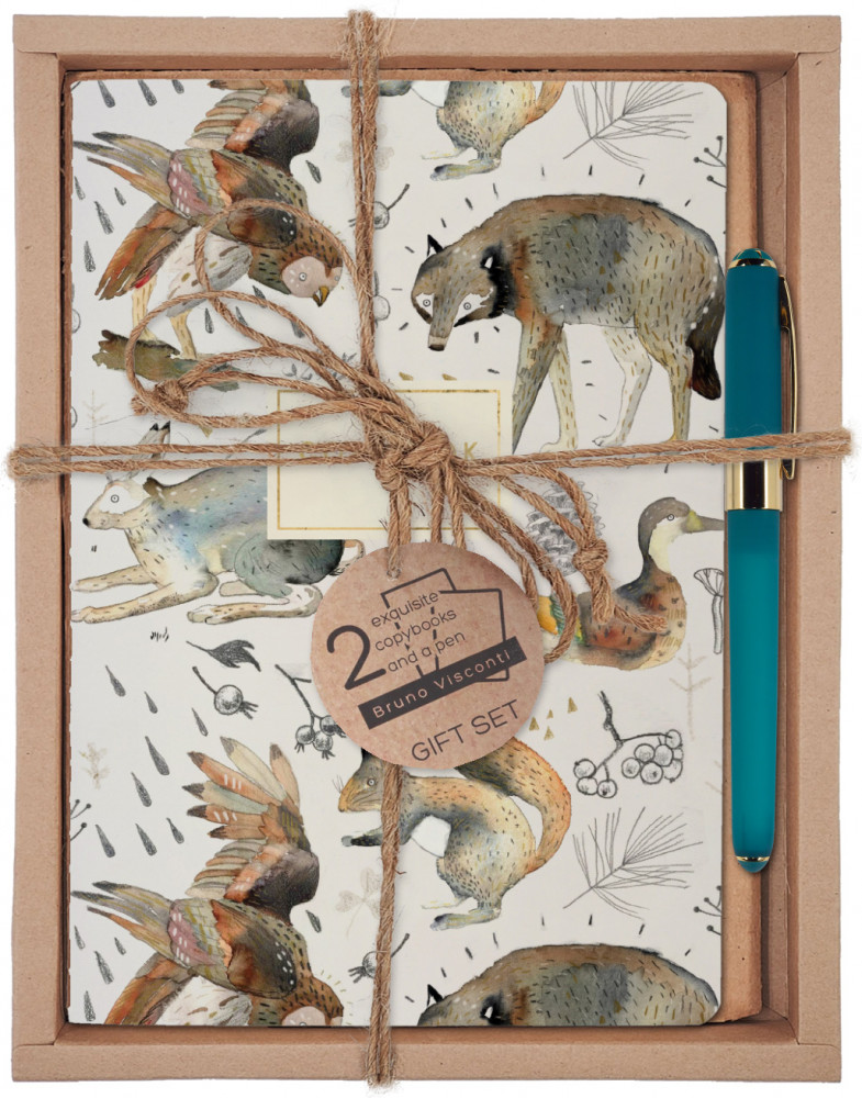 Bruno Visconti Набор подарочный «Осень в лесу»В данный момент этот товар отсутствует в продаже. Возможно, у нас найдется аналогичный или похожий товар здесь. Красивый и элегантный подарочный набор от Bruno Visconti «Осень в лесу». Это универсальный подарок из трех предметов: две качественные тетради формата А5 с эксклюзивным дизайном и шариковая ручка в тон. Упакован в крафтовый картон, перевязанный джутовым жгутом. Обложка украшена акварельными рисунками лесных птиц и животных на белом фоне. Принт создает настроение осеннего леса. Есть вторая обложка с титульным листом и красочными иллюстрациями. Бумажный блок состоит из листов бежевого цвета с линовкой в клетку. Скреплен декоративной нитью. Ручка исполнена в цвете капучино с золотой фурнитурой. Это универсальный подарок или сувенир для друзей и знакомых. |