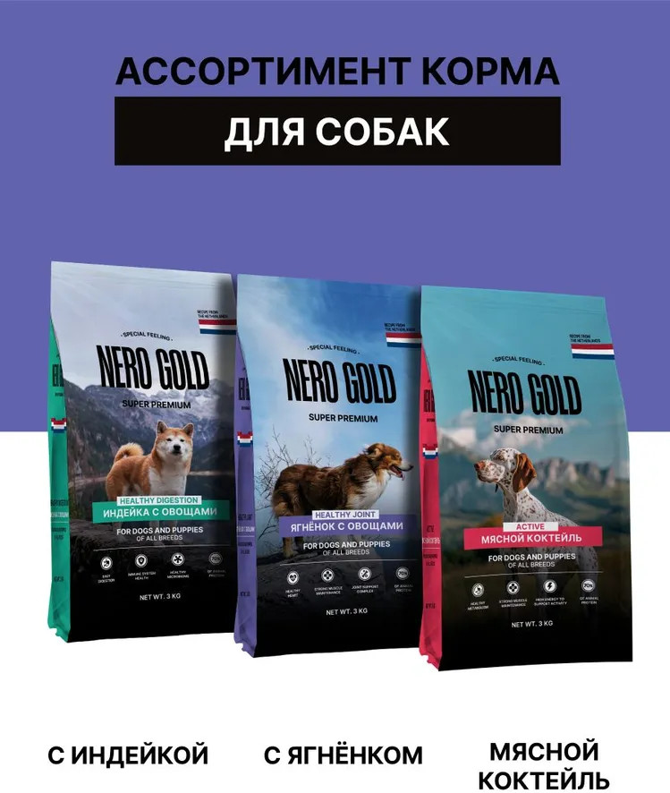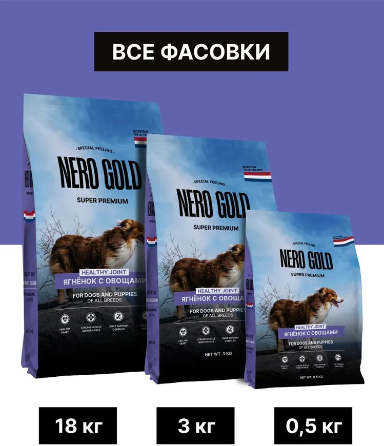 Nero Gold Корм для собак и щенков всех возрастов сухой с мясом ягнёнка и овощами