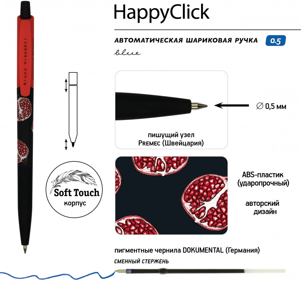 Bruno Visconti Набор «Happyclick. HappyGraphix Jumbo. Fresh and fruity. Гранат»В данный момент этот товар отсутствует в продаже. Возможно, у нас найдется аналогичный или похожий товар здесь. Тактильно приятная, имеющая надежный и простой нажимной механизм с бесперебойной подачей стержня, ручка «HappyClick» от Bruno Visconti станет неизменным помощником в учебе и работе. Комфортный корпус изготовлен из ABS-пластика, что обеспечивает высокую ударопрочность, износостойкость. Бархатное покрытие Soft Touch гарантирует комфортное письмо, рука не устанет при длительном использовании. Удобный пластиковый клип на колпачке позволяет закрепить ручку, например, на ежедневнике, тетради, блокноте. Мягкость, качество письма и тонкость линии 0.38 мм гарантированы производителями пишущего узла — всемирно известной компанией Premec (Швейцария) и чернил — немецким производителем Dokumental. Карандаши серии HAPPY GRAPHIX JUMBO — для тех, кто ценит эргономичность, качество и выразительность. Корпус карандаша произведен из термообработанной липы. Это идеальная древесина для производства карандашей, если речь идет об оптимальном сочетании цена-качество. Она не рассыхается при хранении, корпус не деформируется, а значит грифель надежно закреплен в нем. Карандаши из липы легко и беспроблемно поддаются заточке и ножом, и точилкой. Карандаш серии HAPPY GRAPHIX JUMBO — трехгранный, имеет увеличенный диаметр, что обеспечивает его «правильный захват» тремя пальцами, снижая напряжение кисти. Такой карандаш не будет скатываться с поверхности стола. Увеличенный грифель диаметром 3.5 мм идеально отцентрован и проклеен, благодаря чему не ломается при падении карандаша и заточке. Степень жесткости 4B гарантирует мягкое скольжение карандаша по поверхности бумаги, яркую, контрастную линию. Оригинальные и ультрамодные принты на корпусе карандаша привлекают внимание, вызывают положительные эмоции. |