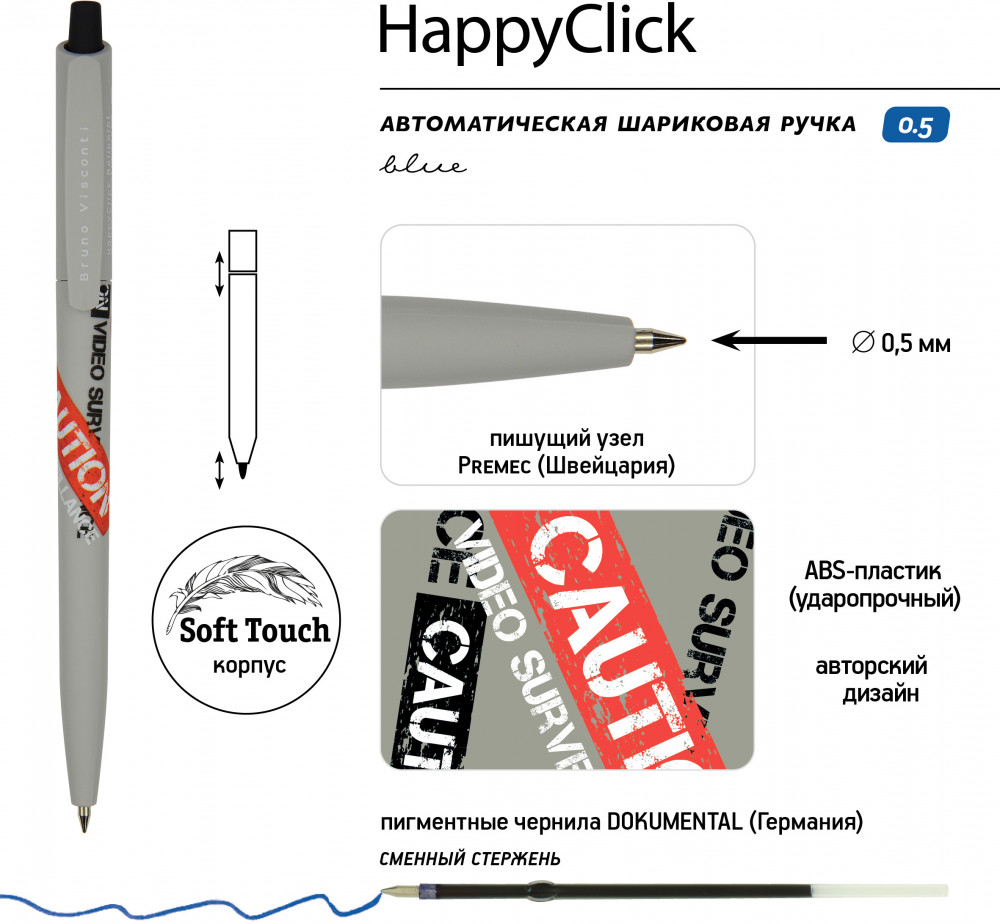 Bruno Visconti Набор «Happyclick. HappyGraphix Jumbo. Keep Away. Video camera»В данный момент этот товар отсутствует в продаже. Возможно, у нас найдется аналогичный или похожий товар здесь. Тактильно приятная, имеющая надежный и простой нажимной механизм с бесперебойной подачей стержня, ручка «HappyClick» от Bruno Visconti станет неизменным помощником в учебе и работе. Комфортный корпус изготовлен из ABS-пластика, что обеспечивает высокую ударопрочность, износостойкость. Бархатное покрытие Soft Touch гарантирует комфортное письмо, рука не устанет при длительном использовании. Удобный пластиковый клип на колпачке позволяет закрепить ручку, например, на ежедневнике, тетради, блокноте. Мягкость, качество письма и тонкость линии 0.38 мм гарантированы производителями пишущего узла — всемирно известной компанией Premec (Швейцария) и чернил — немецким производителем Dokumental. Карандаши серии HAPPY GRAPHIX JUMBO — для тех, кто ценит эргономичность, качество и выразительность. Корпус карандаша произведен из термообработанной липы. Это идеальная древесина для производства карандашей, если речь идет об оптимальном сочетании цена-качество. Она не рассыхается при хранении, корпус не деформируется, а значит грифель надежно закреплен в нем. Карандаши из липы легко и беспроблемно поддаются заточке и ножом, и точилкой. Карандаш серии HAPPY GRAPHIX JUMBO — трехгранный, имеет увеличенный диаметр, что обеспечивает его «правильный захват» тремя пальцами, снижая напряжение кисти. Такой карандаш не будет скатываться с поверхности стола. Увеличенный грифель диаметром 3.5 мм идеально отцентрован и проклеен, благодаря чему не ломается при падении карандаша и заточке. Степень жесткости 4B гарантирует мягкое скольжение карандаша по поверхности бумаги, яркую, контрастную линию. Оригинальные и ультрамодные принты на корпусе карандаша привлекают внимание, вызывают положительные эмоции. |