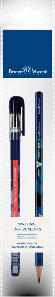 Bruno Visconti Набор «Magicwrite. FunGraphix. Милитари»В данный момент этот товар отсутствует в продаже. Возможно, у нас найдется аналогичный или похожий товар здесь. Ручки «MagicWrite» ТМ Bruno Visconti для поклонников каллиграфического почерка и тонкого письма. Надежный пишущий узел от швейцарского производителя Premec обеспечивает плавную и бесперебойную подачу чернил, произведенных в Германии (Dokumental). Поэтому чернила ложатся на поверхность бумаги плавно, без давления на ручку, не напрягая кисть. Толщина линии письма — 0.38 мм — яркая, четкая, тонкая. Корпус ручек из ABS-пластика гнется при сильном ударе или нажиме, но не ломается — гарантия безопасности и долгого срока службы. Покрытие Soft Touch создает дополнительный комфорт в работе. Карандаши HAPPY GRAPHIX — для тех, кто ценит эргономичность, качество и выразительность. Корпус карандаша произведен из термообработанной липы. Это идеальная древесина для производства карандашей, если речь идет об оптимальном сочетании цена-качество. Она не рассыхается при хранении, корпус не деформируется, а значит грифель надежно закреплен в нем. Карандаши из липы легко и беспроблемно поддаются заточке и ножом, и точилкой. Карандаш имеет трехгранную форму, что обеспечивает его «правильный захват» тремя пальцами, снижая напряжение кисти. Такой карандаш не будет скатываться с поверхности стола. Грифель идеально отцентрован и проклеен, благодаря чему не ломается при падении карандаша и заточке. Оригинальные и ультрамодные принты на корпусе карандаша привлекают внимание, вызывают положительные эмоции. |
