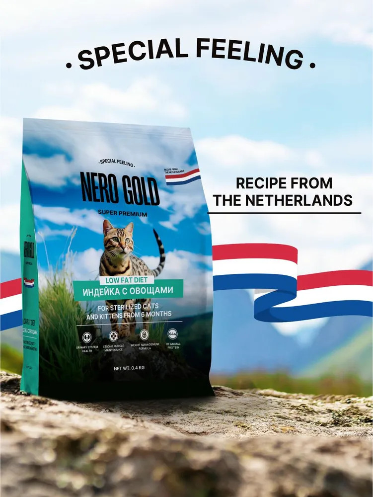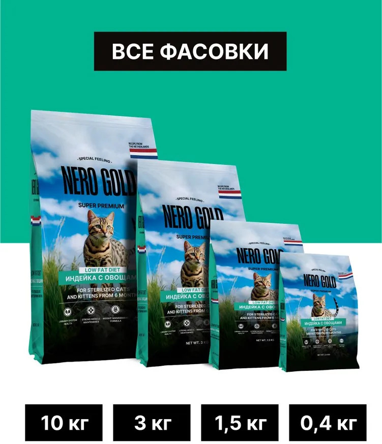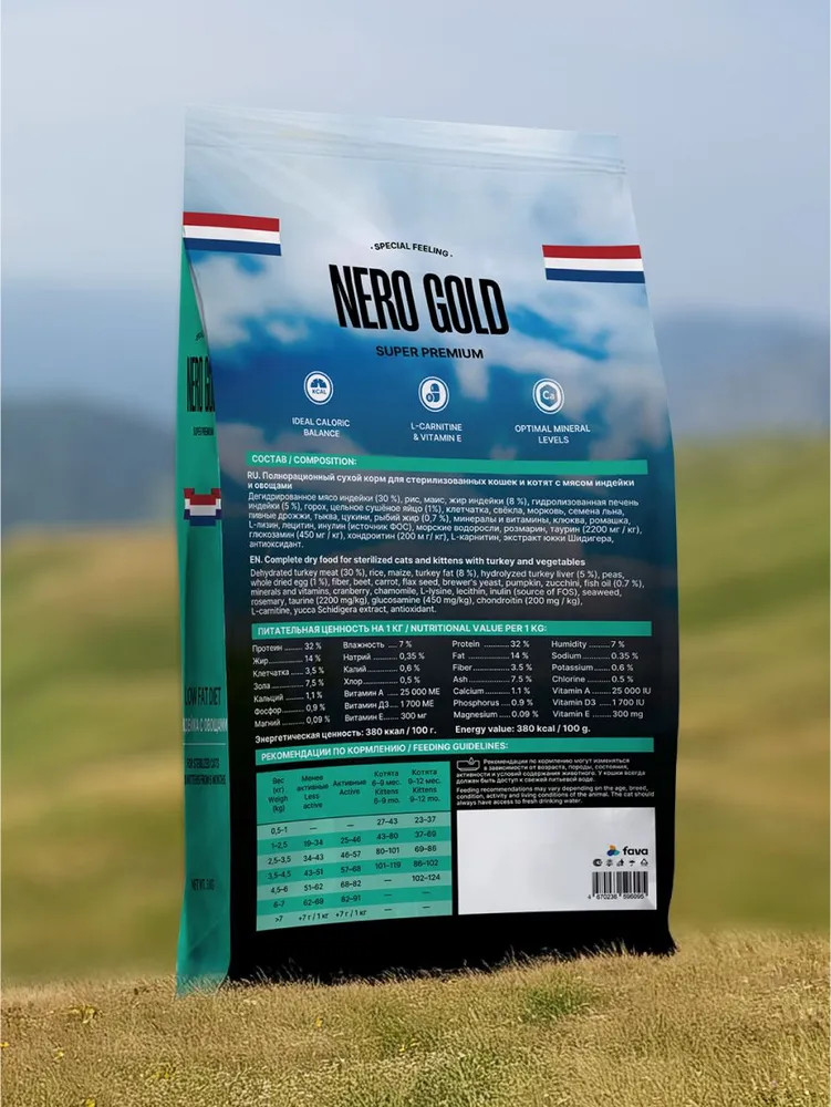 Nero Gold Корм для стерилизованных кошек и котят сухой с мясом индейки и овощами