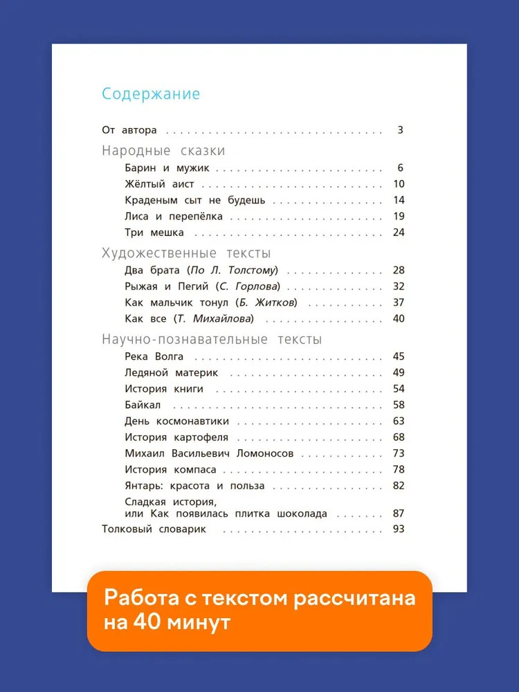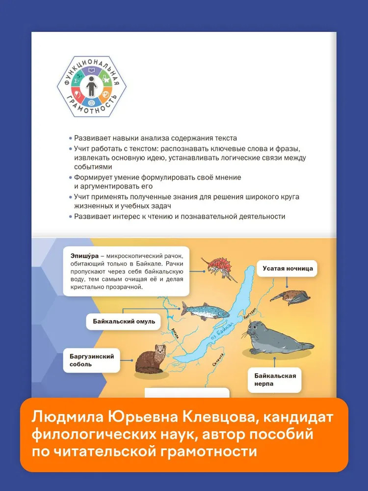 💳 Оплатить за товар можно при получении 🇰🇿 Есть бесплатная доставка по Казахстану от 1 дня 🎁 Копите бонусы с каждой покупки Серия: Функциональная грамотность. Тренажёр Пособие предназначено для развития навыков смыслового чтения у младших школьников. Оно содержит тексты народных сказок, художественные и научно-познавательные тексты, сопровождаемые системой заданий. Материалы пособия могут быть использованы для диагностики и оценки уровня владения навыками смыслового чтения как важнейшего компонента функциональной грамотности обучающихся в начальной школе. Пособие полностью соответствует действующим ФГОС и ФОП НОО. Книга рассчитана на применение на уроках русского языка и литературного чтения в индивидуальной и групповой работе учащихся, во внеурочной работе и в условиях домашней подготовки. |