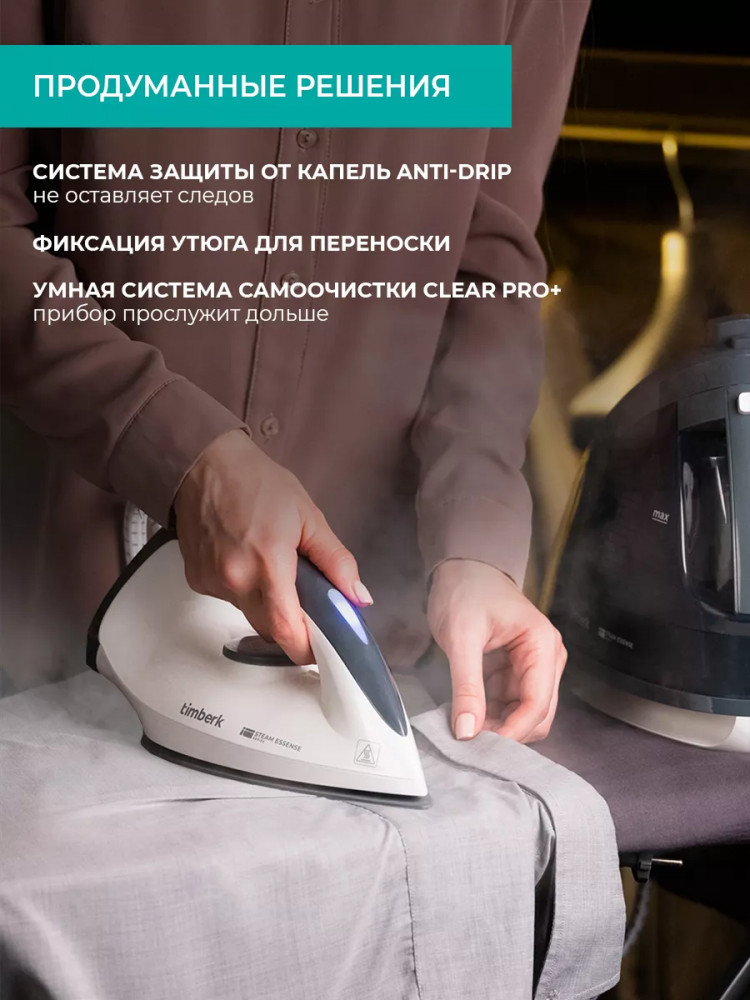 Парогенератор Timberk серии Steam Essense — отличное решение для дома. Благодаря мощности в 2600 Вт и давлению пара 8 бар, устройство быстро нагревается и выдаёт плотное облако пара. Керамическая подошва утюга, ЭКО режим и защита от случайных капель обеспечивают быстрое и бережное глажение. Умная система самоочистки и функция автоотключения делают использование прибора комфортным и безопасным.