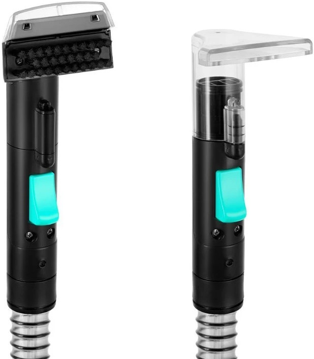 Чистая вода проходит через фильтр, который задерживает крупные частицы, если они случайно попали в воду. Второй фильтр установлен на выходе из резервуара для грязной воды. На воздухоотводящих отверстиях есть 2 фильтра от выброса в воздух пыли.